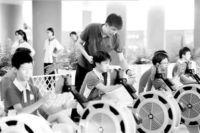 红岭中学实施智慧体育,图为教师利用划船机精准强化教学。学校供图