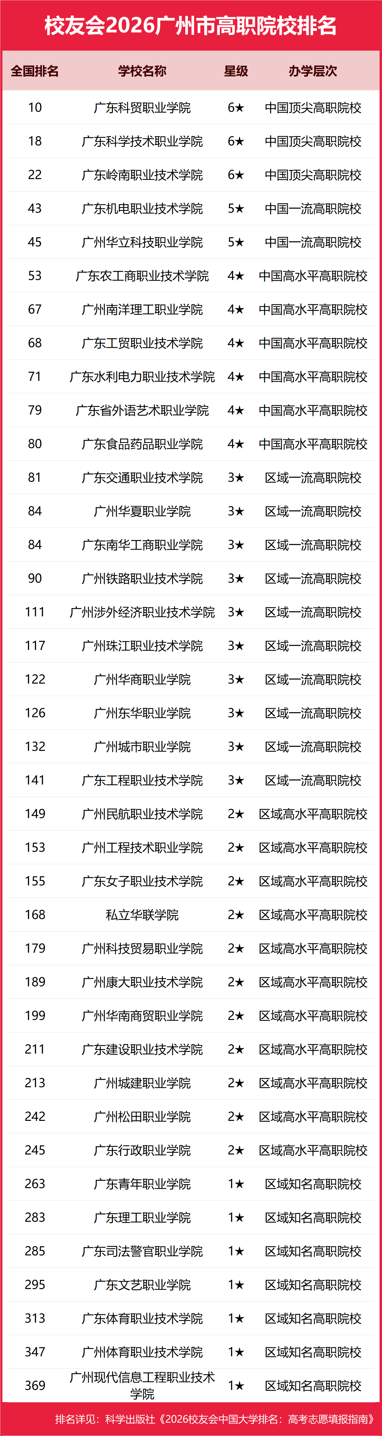 校友会2026广州市高职院校排名,广东科贸职业学院第一,广东科学技术职业学院、广东岭南职业技术学院前三