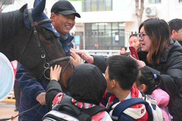 校门迎新现场打造沉浸式五育体验,骏马亮相让孩子们感受“骐骥驰骋”的精气神,春晚瑞马吉祥物与校园凤宝相映,木工、AI互动、书法美术等展台错落排布,学校还展出了上学期学子斩获的国家级美术获奖作品,让五育融合落地,厚植文化自信。
