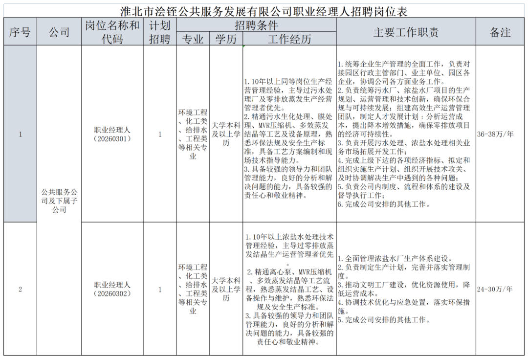 (二)招聘岗位:职业经理人2名