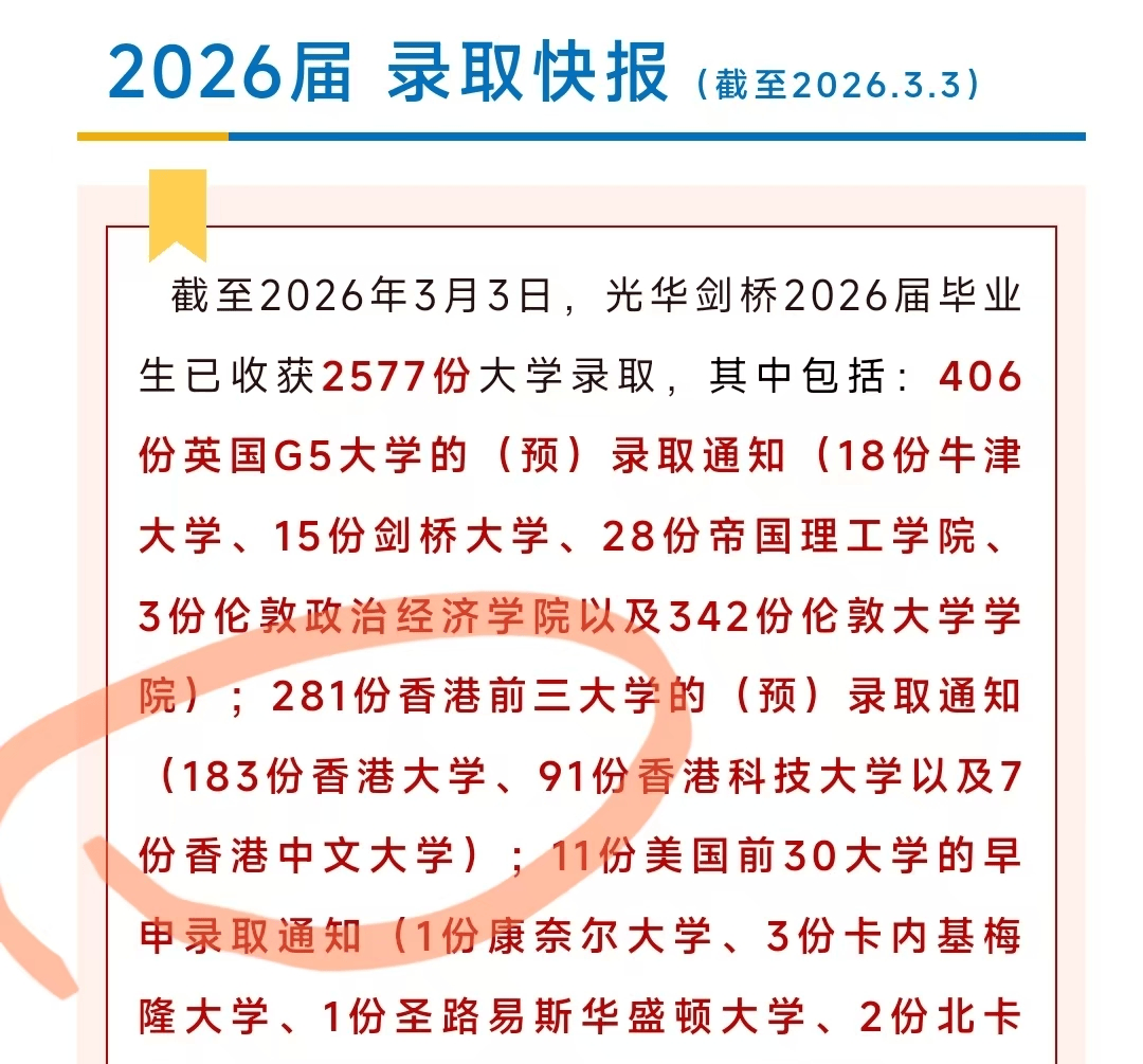 光华剑桥揽获183枚港大offer,位居魔都TOP1;
