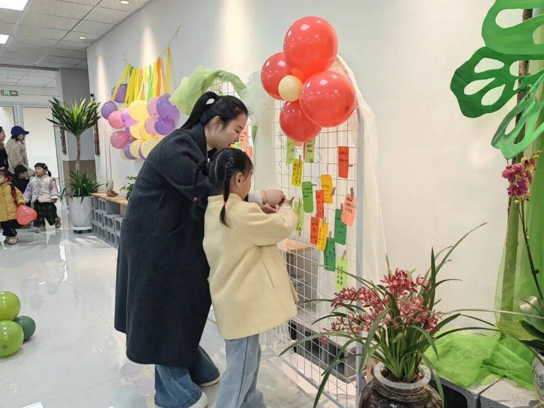 萌娃们睁着好奇的小眼睛,在家长的陪伴下,蹦蹦跳跳跨过“成长之门”,脸上满是欢喜。老师们蹲下身,耐心帮孩子们整理衣角、引导他们打卡拍照。家长们则认真写下对孩子的美好期许,逐一将卡片贴在心愿墙上。一张张稚嫩的笑靥,一张张承载期盼的卡片,共同定格下成长路上的美好瞬间。“孩子特别喜欢这里,我们做家长的也很放心。”一位家长笑着说。