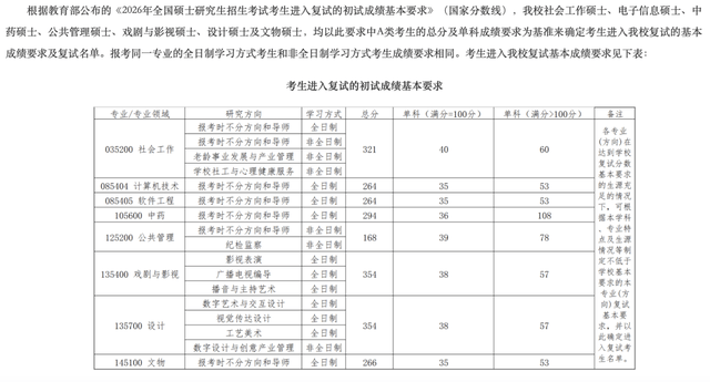 学校发布了2026年硕士研究生招生考试复试基本分数线,报考该校的同学可以点击链接查询具体专业要求。