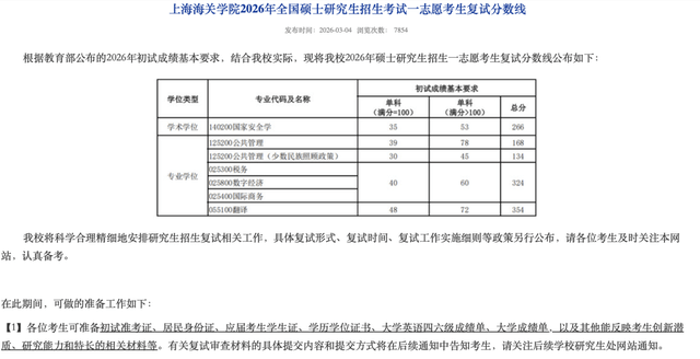 上海海关学院已公布2026年全国硕士研究生招生考试一志愿考生复试分数线,一志愿考生请重点关注。