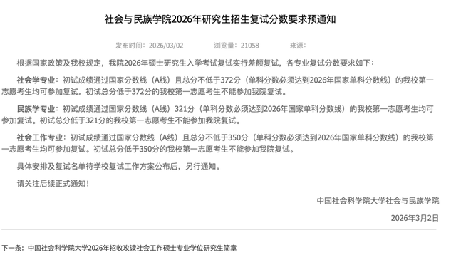 作为科研实力强劲的研究所,该所已公布2026年硕士复试分数线,报考相关专业的同学请密切关注。