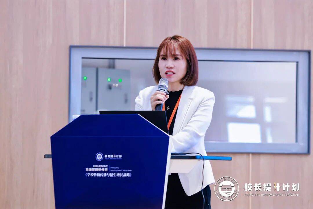 上海青浦区协和双语学校校长、上海青浦区协和双语徐和路学校校长黄莹深入解析了学校如何通过构建“家长社区”,实现家长从“旁观者”到“同行者”再到“传播者”的角色跃迁,并以此为核心引擎,在市场挑战中驱动可持续的价值传播与生源增长。她从困局溯源、方法赋能、长效增长三大维度,系统拆解了家校关系破局、教育社区共建及生态化运营的完整路径,通过凝聚共识、激活场域、转化信任、技术赋能,构筑起坚实的竞争壁垒,为学员提供了从理念到行动、从策略到落地的可借鉴路径与关键行动点。