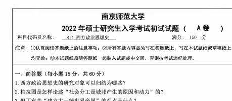 2012-2022、2026年南京师范大学812西方政治思想史考研真题试卷【26无答案】