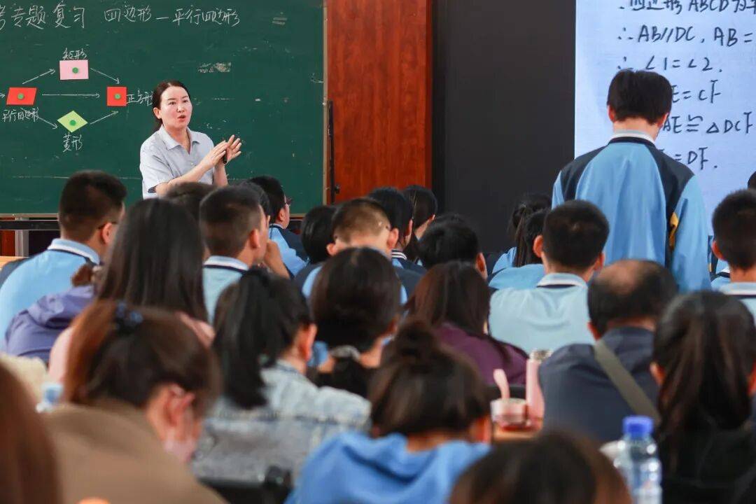 西安市阳光中学周三娟老师带来一节《中考专题复习四边形—平行四边形》示范课,本节课以平行四边形为核心,围绕性质与判定、模型应用、综合解题展开教学。课上以苏州博物馆建筑视频导入,联结生活与几何,引导学生类比三角形构建四边形知识框架,夯实基础核心;依托教材例题设计学生活动,层层递进,兼顾不同学生需求,开展证明、探究、计算训练,突破性质与判定应用难点;通过情境创编、变式训练落脚中考真题演练,强化动态几何解题步骤,提升逻辑推理与知识迁移能力。多个环节融入学科育人教育,落实大单元复习与素养导向,有效助力学生备战中考几何模块。