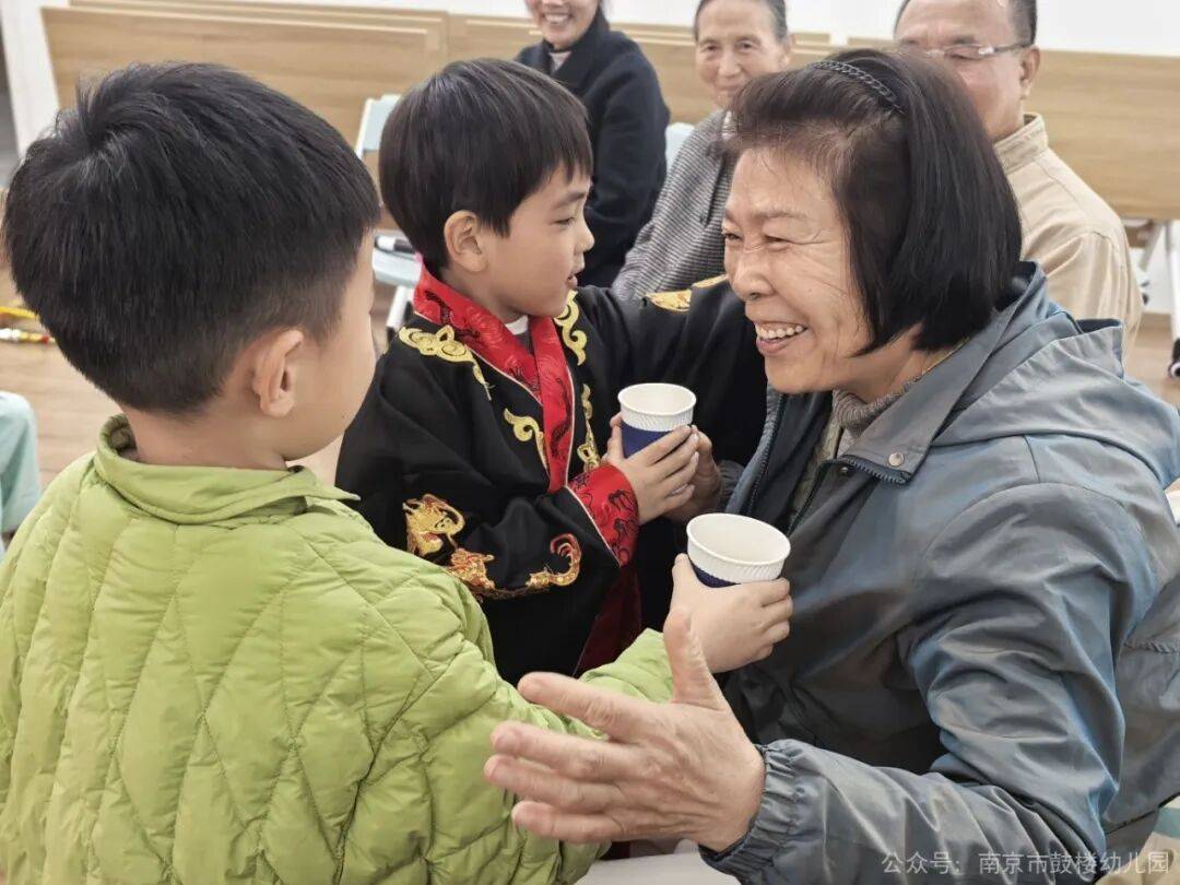 孩子在家更是暖心小棉袄,主动给爷爷奶奶端上一杯热茶,甜甜问好、温暖陪伴。大班的孩子们还特别邀请爷爷奶奶走进小园子,牵着长辈的手参观幼儿园,介绍班级趣事,献上稚嫩又真诚的表演。一牵一引、一敬一谢间,把尊敬长辈、孝顺老人的美好品德,藏进每一次温柔相处里。
