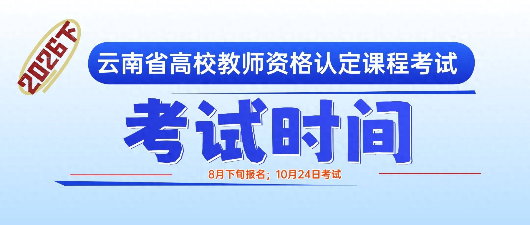 2026年下半年云南省高校教师资格认定课程考试(以下简称高校教师资格考试)将于10月24日进行。