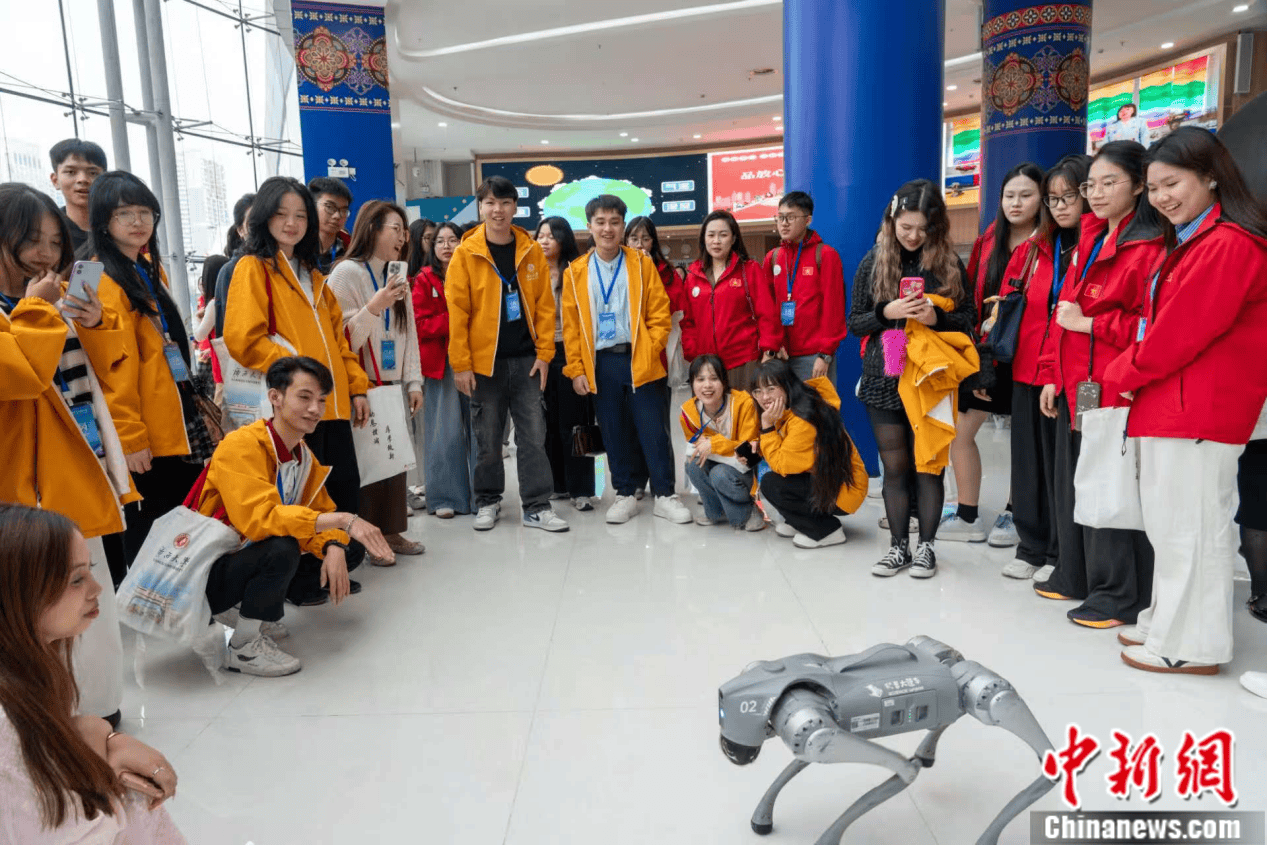 2025年12月,越南师生参加广西大学国际学生AI研学营,观看智能机器狗表演。广西大学供图
