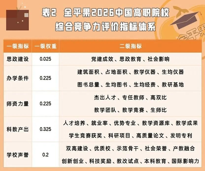 高职院校评价结果已连续发布15年,评价由5个一级指标、36个二级指标和200多个观测点组成,职业本科、高职高专院校分开排名。