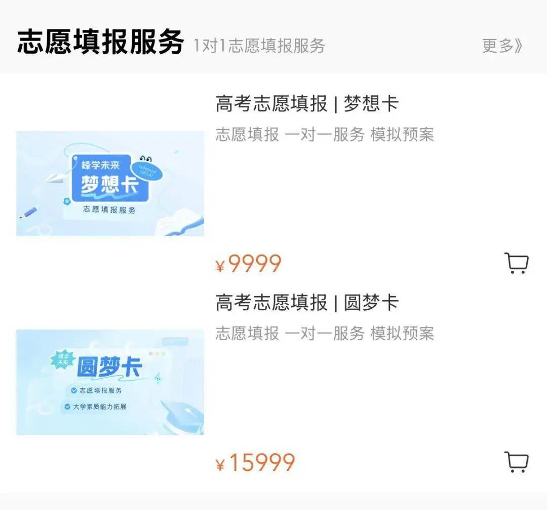 而市面上,一对一的志愿咨询服务价格则不等,初级的服务起步价在2999元,高端的咨询服务像峰学蔚来推出的产品价格能达到近2万元。