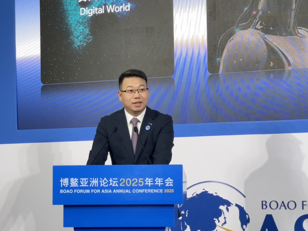 胡柏山在博鳌亚洲论坛2025年年会上介绍vivo机器人Lab相关情况。 澎湃新闻记者 秦盛 摄