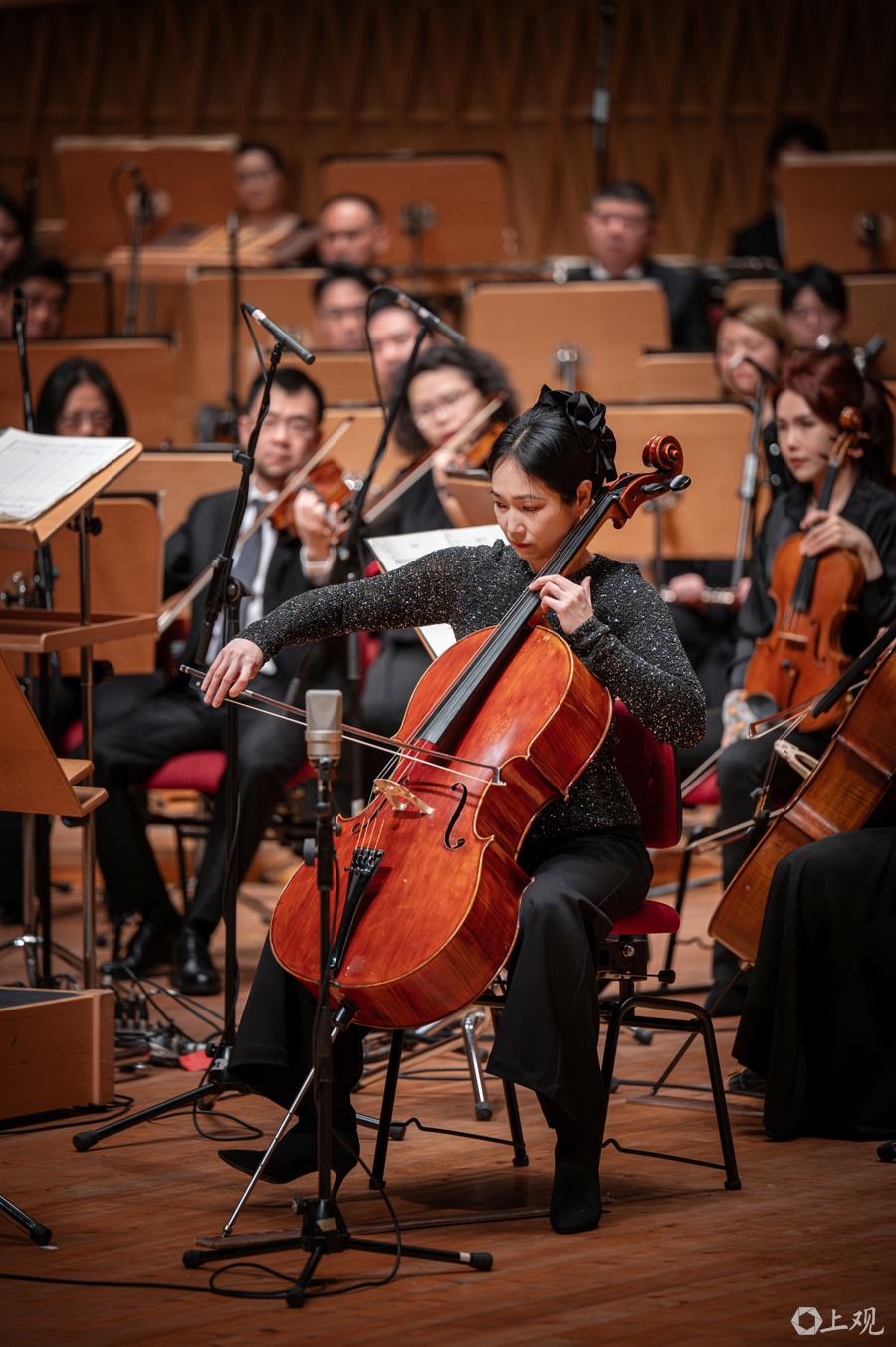 上海交响乐团大提琴家朱琳在“温暖中国”的篇章奏响深情的旋律。