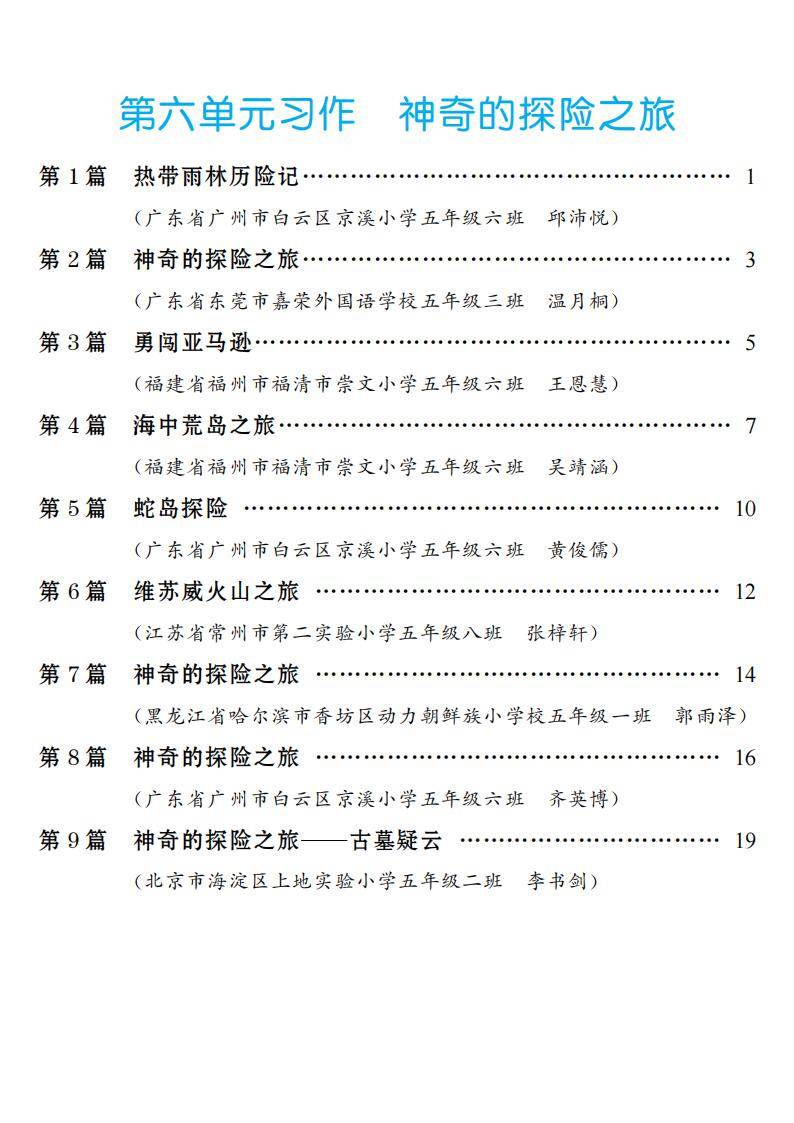 今天为大家分享:五年级下册语文(1-8单元)习作例文,涵盖了多个不同主题的优秀学生作文。第一单元的主题是“那一刻,我长大了”,其中有多篇来自不同地区学生的作文,呈现出多样的视角与情感表达;第六单元则围绕“神奇的探险之旅”,以探险为主线展开丰富的想象与描写,典型的文章包括《热带雨林历险记》《勇闯亚马逊》等;而第八单元的“漫画启示”主题,通过漫画故事引出人生启示,展现不同作者对生活和价值的独特理解。这些习作不仅从内容上展现了主题的多样性,还配有部分教师的点评,帮助学生深刻理解每篇文章的亮点和思路。
