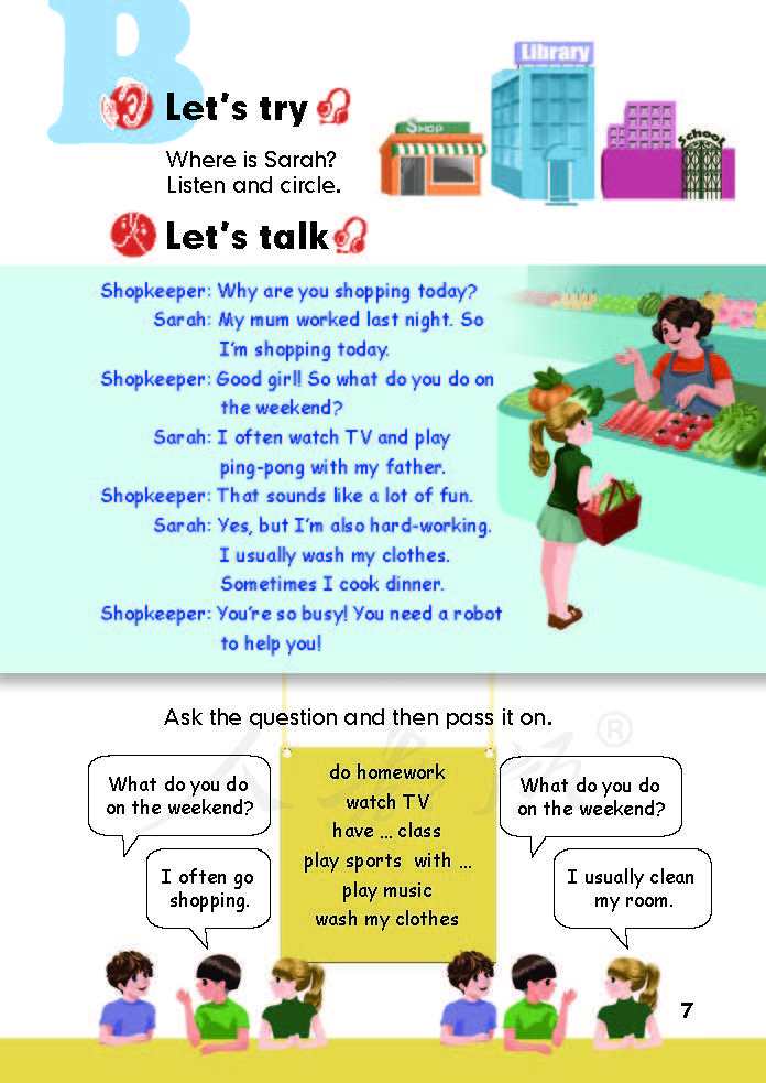 - **Let's talk**:以对话形式呈现本单元的核心句型和日常交际用语,通过真实的语境,让学生学会在不同场景中运用英语进行交流。