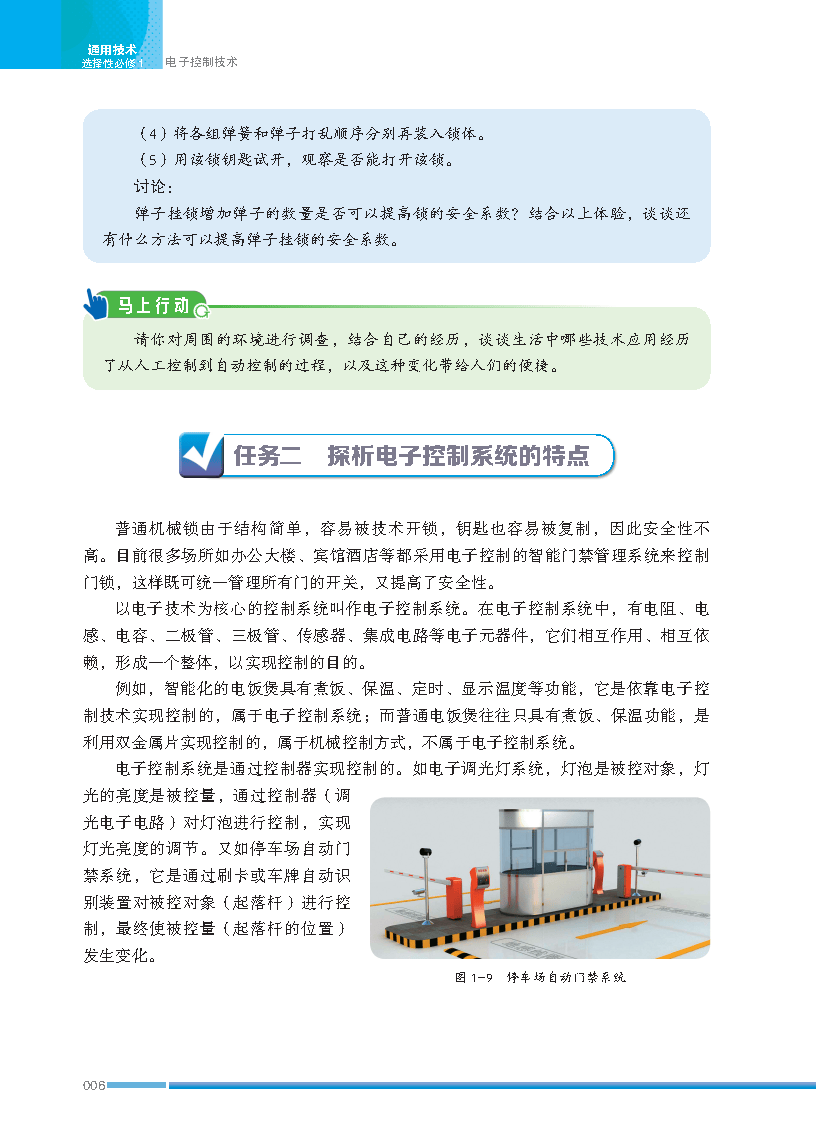- **设计与应用**:涉及多谐振荡器的安装与调试,开环、闭环电子控制系统的设计和应用,以及改进浴室热水温度自动控制系统等内容。