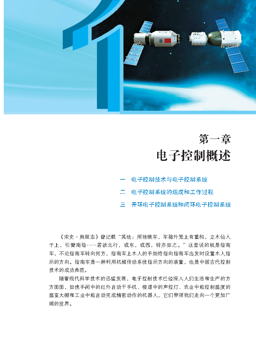 - **电子控制技术与系统**:介绍电子控制技术的应用、电子控制系统的特点、组成和工作过程,区分开环与闭环电子控制系统。