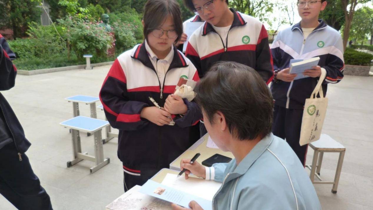 特邀嘉宾、作家鹿丁联现场向师生赠书并签名留念。她感慨道:“踏入校园,槐香与书香交织沁人;观同学们的手抄报与表演,更见少年人的赤诚与才思。”她勉励学子以阅读为舟,在文字中丈量天地,在思考中丰盈自我。家长代表亦分享亲子共读经验,强调家庭阅读氛围对成长的影响。