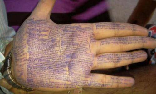 很多考生会在考试前先把答案写在手上、衣服里、或是空白纸条上,装在口袋里带进考场进行作弊。当然这些作弊方式都比较普通,很容易被监考老师发现并制止。于是考生们绞尽脑汁,又想到了其他办法来作弊,比如让父母家人帮助他们作弊。而那些考生的父母为了让孩子考到好成绩也是拼了,有些考生的考场是在高楼层,但父母依然会想办法爬到孩子窗户边去给他传答案。