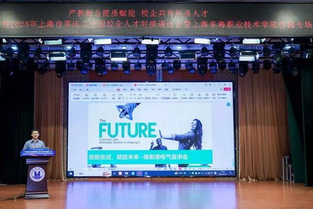 活动一开始,包括上海施耐德低压终端电器有限公司在内的4家企业,就企业概况、企业文化、企业岗位等展开了宣讲,让在座的大学生可以在最短的时间里更清晰、快速地了解相关信息,便于之后的双向选择。作为学长,即将在下个月正式入职上海施耐德低压终端电器有限公司的2025届机电一体化专业的夏应天还为学弟学妹们做了经验分享。他告诉记者,去年在招聘会投出简历后,喜获公司的参观邀请,之后便顺利得到了实习机会,“自从去年7月进公司开始实习以来,我学习、成长了很多,不仅考出了电工证,而且正在从一个‘小白’向‘多能工’迈进,非常有获得感、幸福感。”