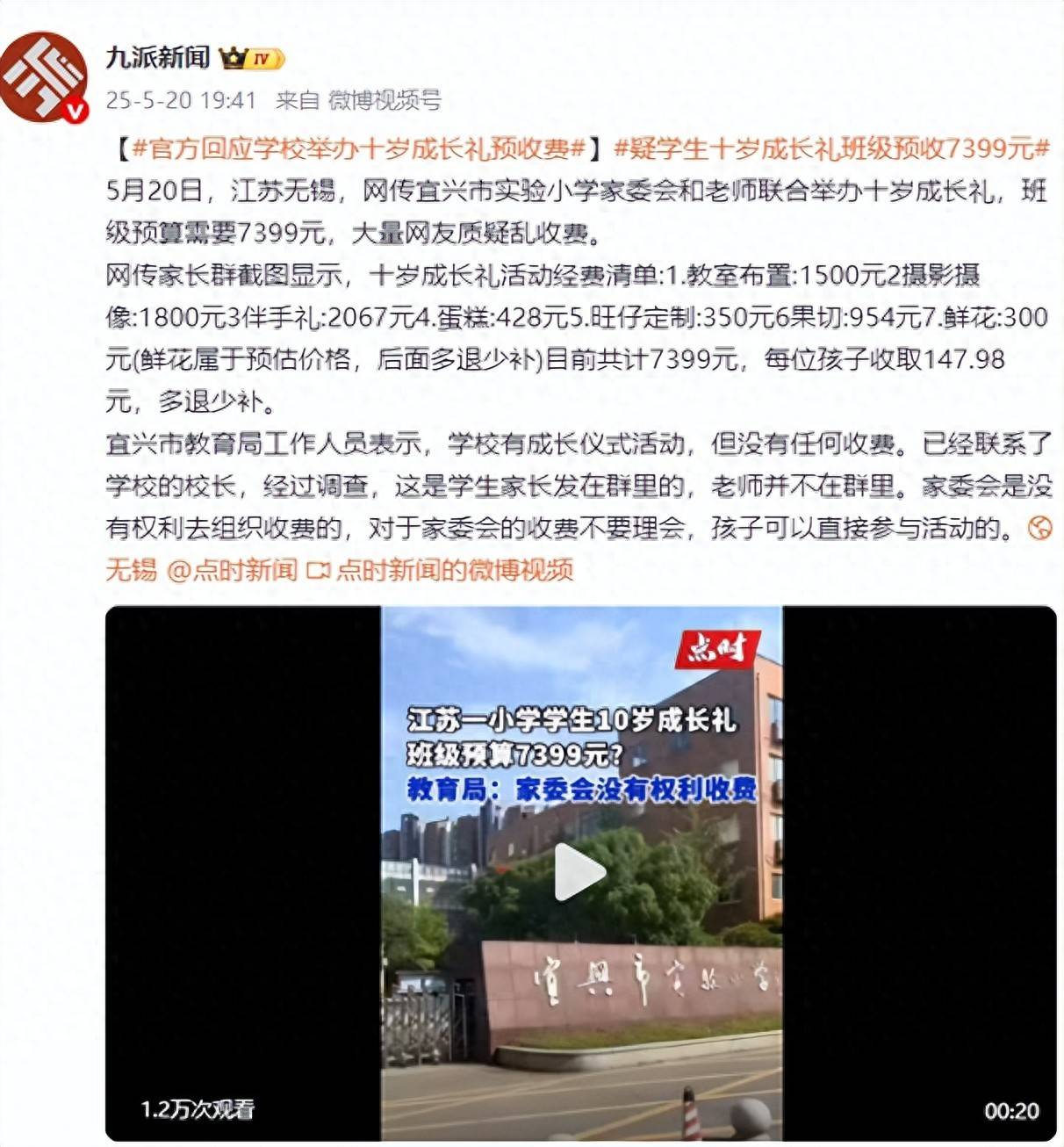 对此,宜兴市教育局表示,经过调查,确实存在成长仪式活动,但并未收取任何费用,指责这笔收费乃家委会私自进行。教育局强调,班级老师并不在收费微信群中,家委会没有权利进行收费,因此家长们无需关注此事,孩子可以直接参与活动。