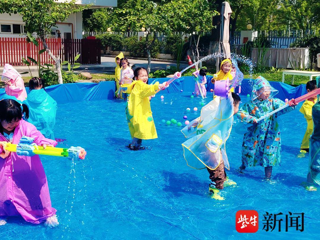黄桥中心幼儿园大、中班的孩子们举办了欢乐的艺术节,尽情展现各自的才艺,小班的孩子们则穿着五彩的雨衣,在水枪大战、雨衣秀、踩水球等游戏中开启了一场夏日狂欢,还利用塑料瓶、泡沫板、木棒等材料精心打造了一艘“小船”,在寓教于乐中培养了团队合作精神和对科学探索的兴趣。