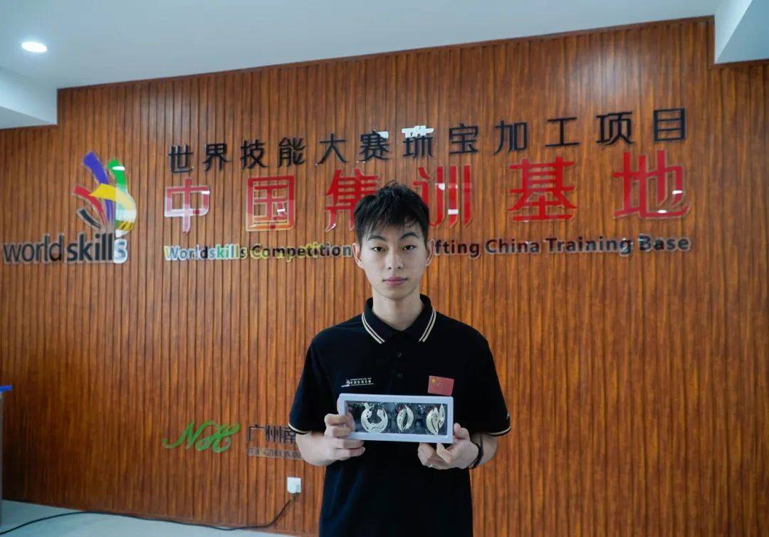 在位于南华工贸(南沙校区)的世界技能大赛珠宝加工项目中国集训基地,南华工贸珠宝首饰设计与制作专业学生、第三届全国技能大赛轻工行业选拔赛珠宝加工项目冠军唐伟忠正打磨着他最新的训练作品,全力备战9月的全国技能比赛。“目前,我主要练习往年的一些赛事作品,学院老师也会在设计方面对我加强训练。我们学院这种专业设备齐全的训练环境,对我备赛练习的帮助很大。”唐伟忠说。