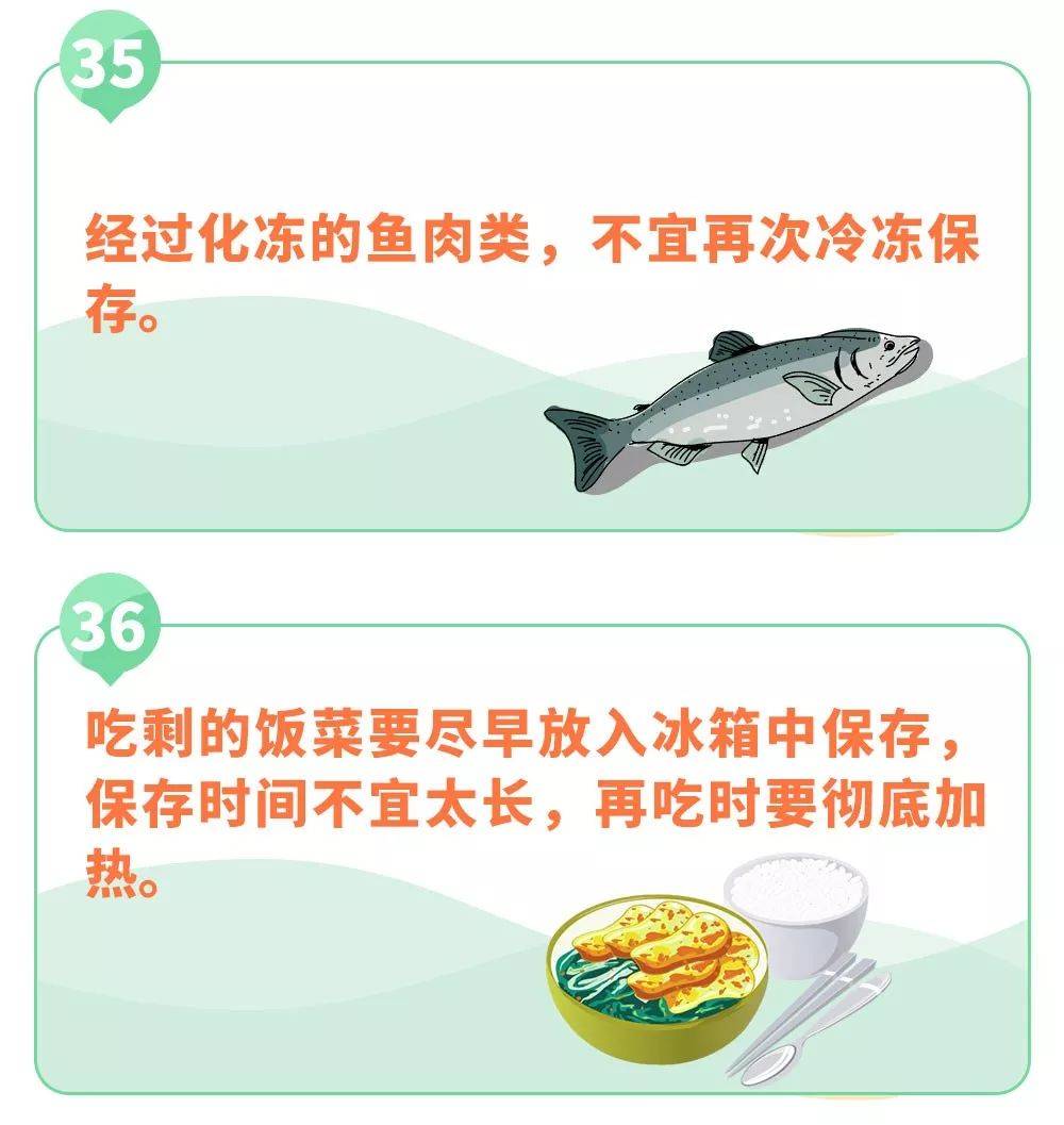 (五)尽量少吃或不吃剩菜剩饭,如果吃剩菜剩饭,要先通过看和闻判定颜色、味道等感观性状是否异常,异常意味着已经变质,不可食用,无异常的一定要彻底加热,防止细菌性食物中毒。