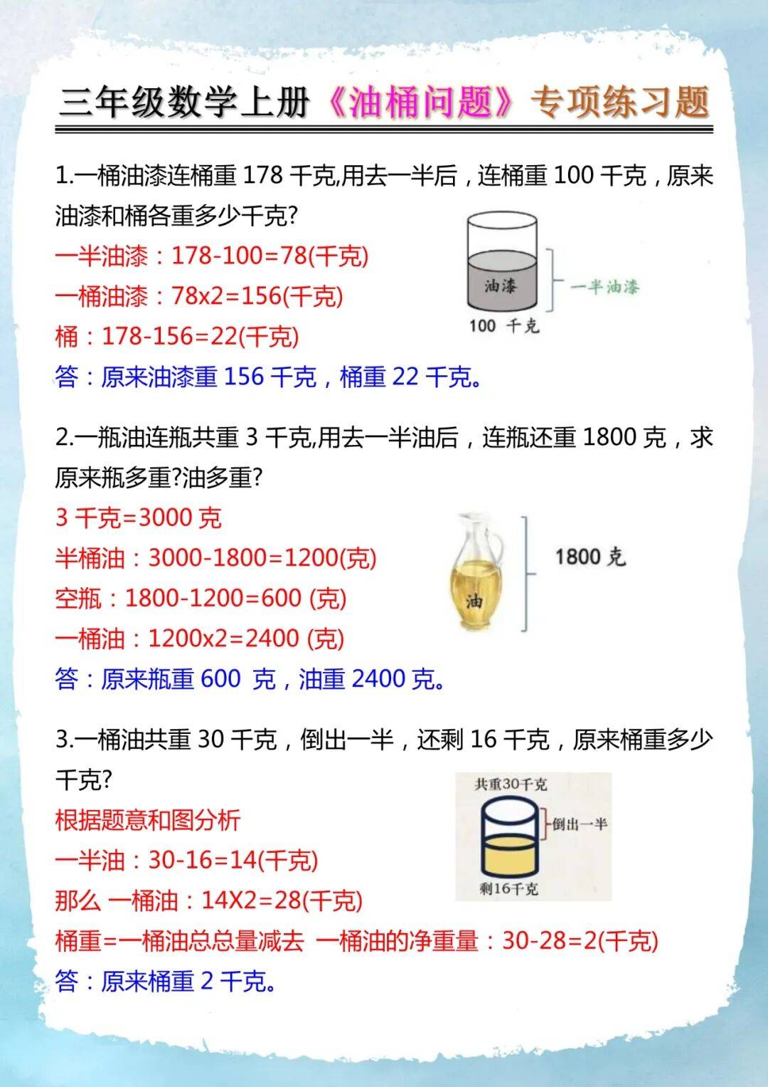 ③1份油线段(即原油量):16÷(5-3)=8(千克)