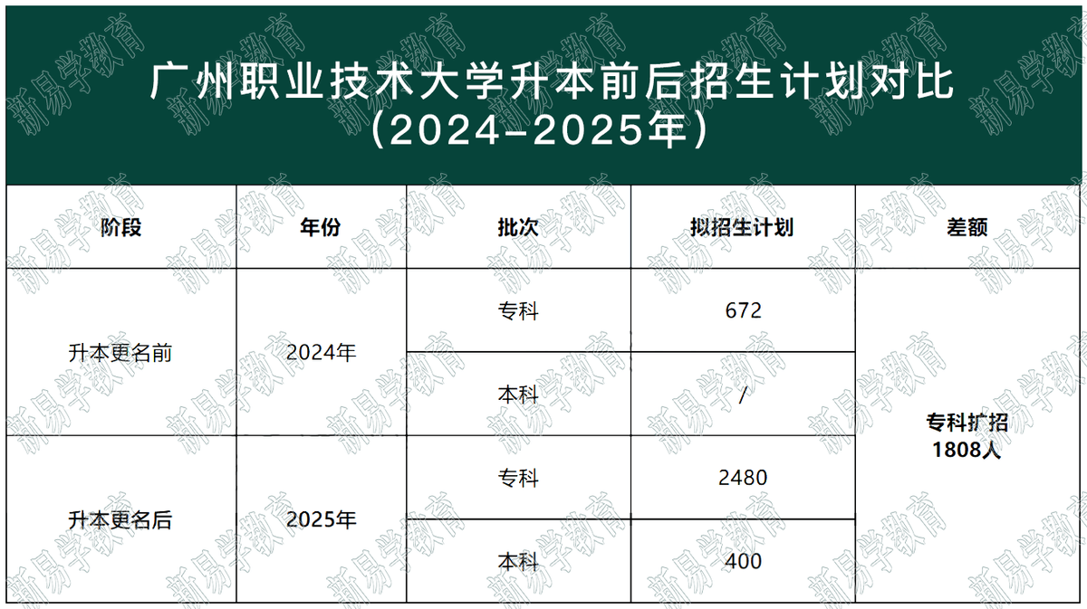 学校于2025年升格为职业本科。同时,广职大是今年升格本科的3所高校中,招生计划最多的一所高校。