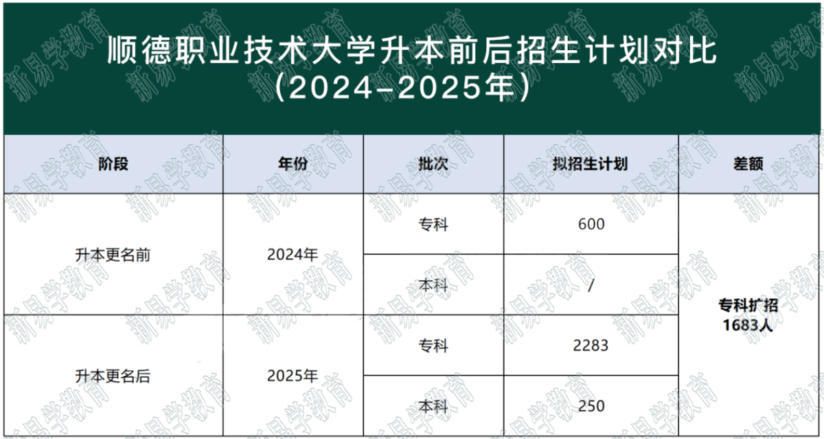 今年,顺职大首招了6个本科专业,在本科批次共招生250人。2024年顺职大的专科批次招生计划较少,升本后面向广东省内招2283人,对比2024年扩招了1683人。