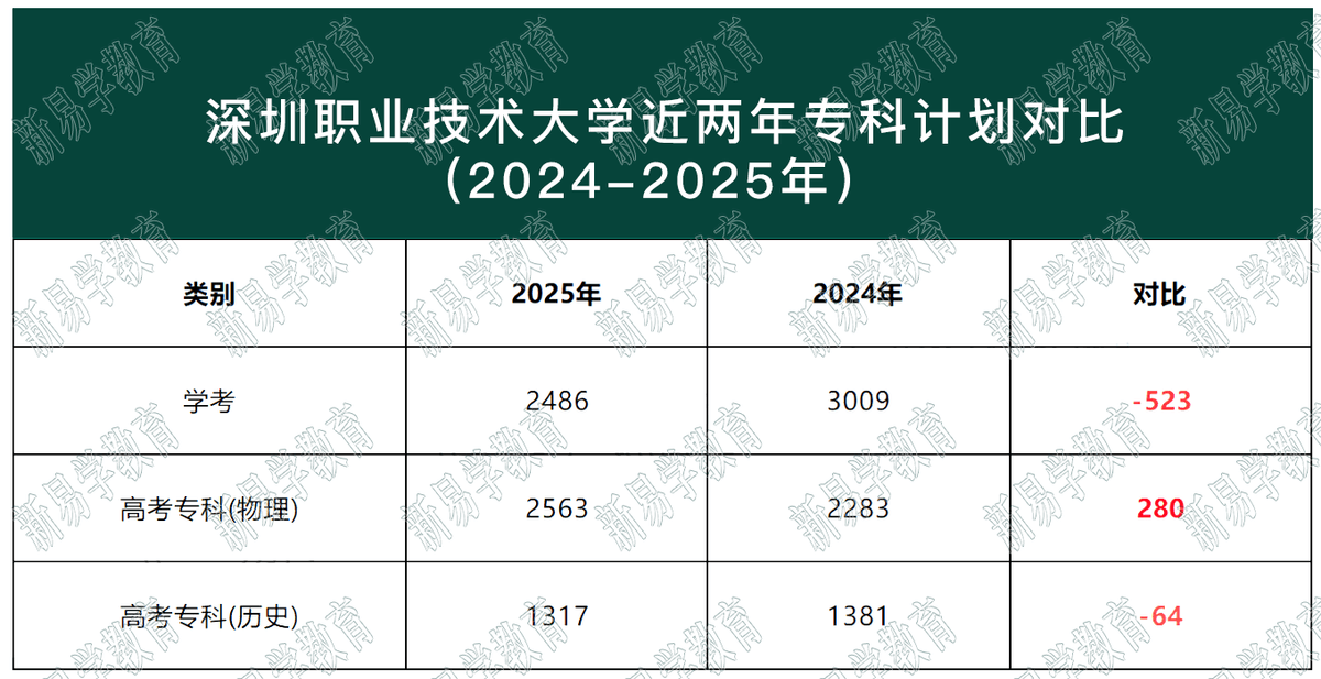 从深职大近两年专科招生计划对比来看,无论是学考还是高考专科批次,深职大的专科招生计划都在减少,只有2025年物理类招生有少幅度回升。