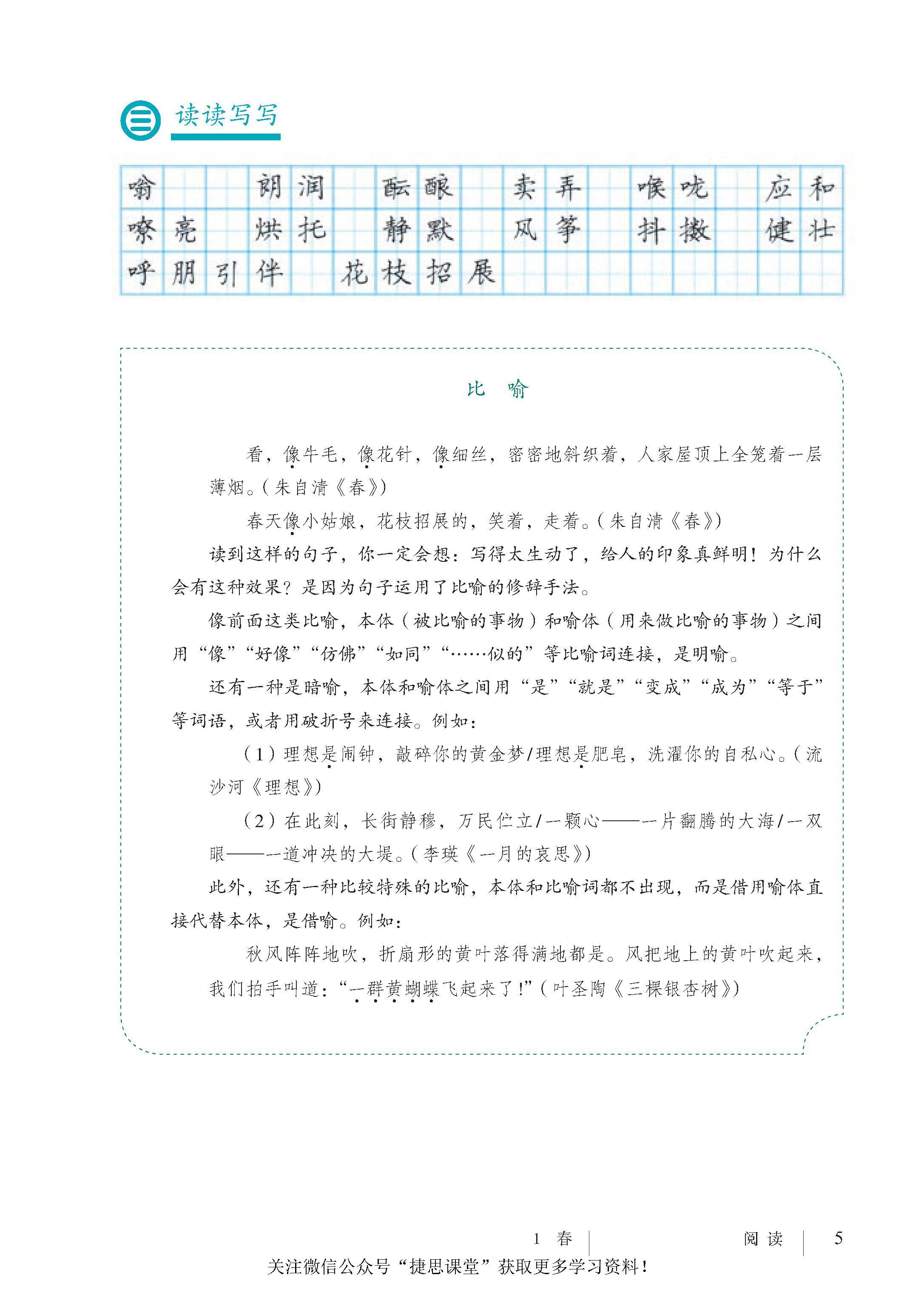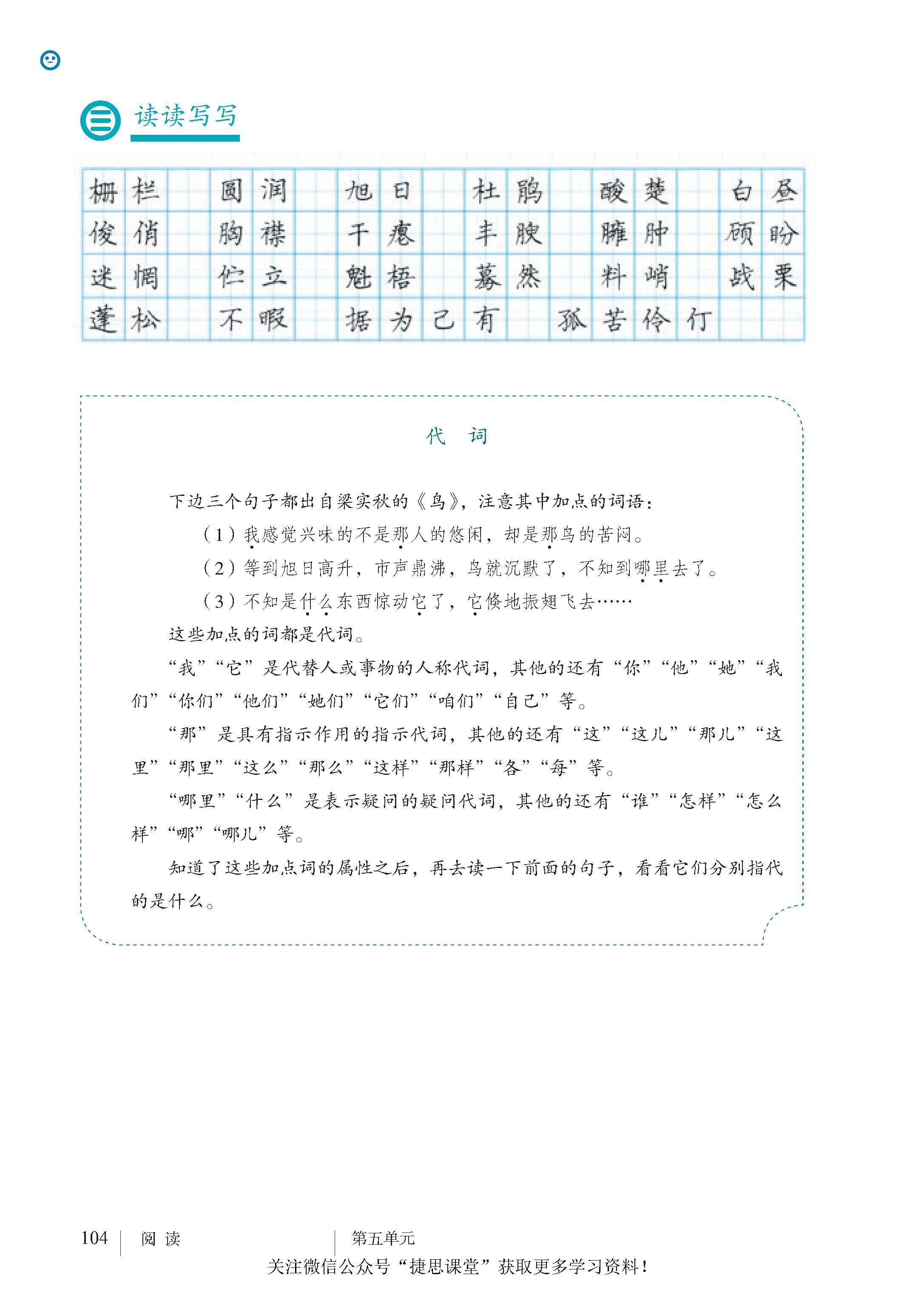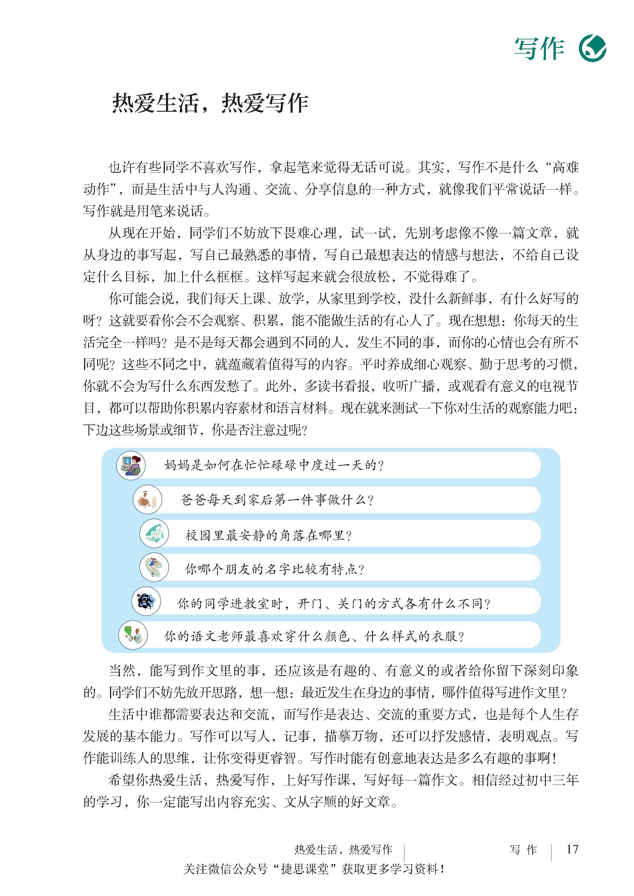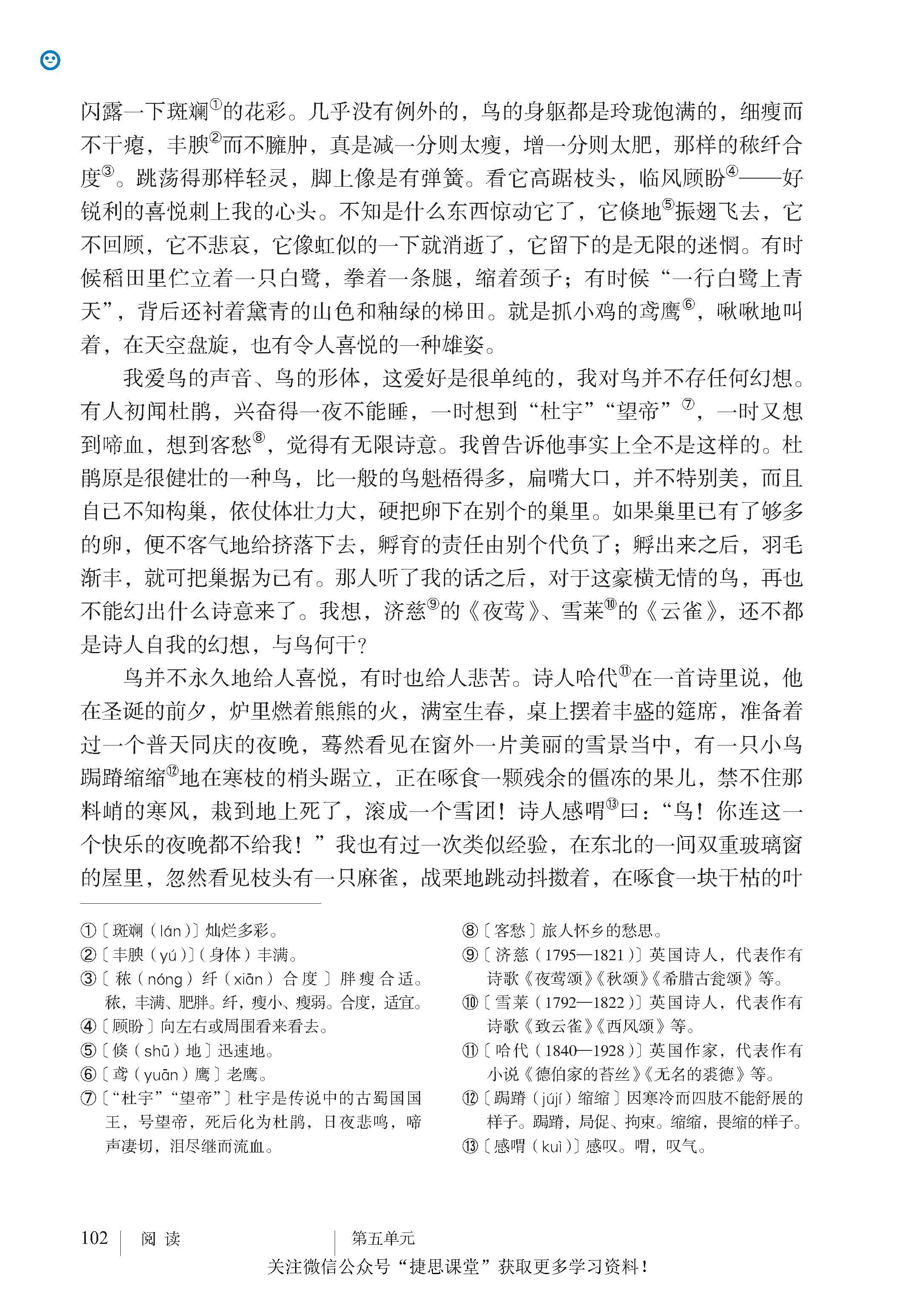 任务一 体会人与动物的关系:17. 猫 / 郑振铎18. 我的白鸽 / 陈忠实19. 大雁归来 / 利奥波德20. 狼 / 蒲松龄任务二 亲近动物,丰富生命体验任务三 记叙与动物的相处