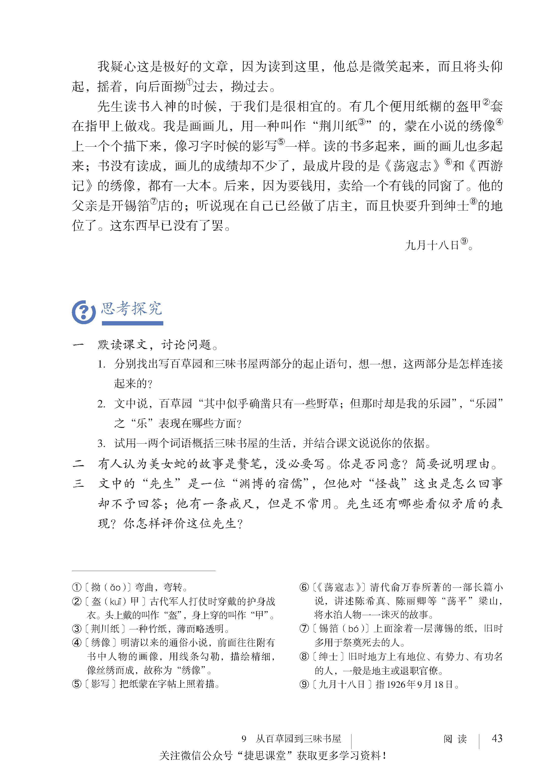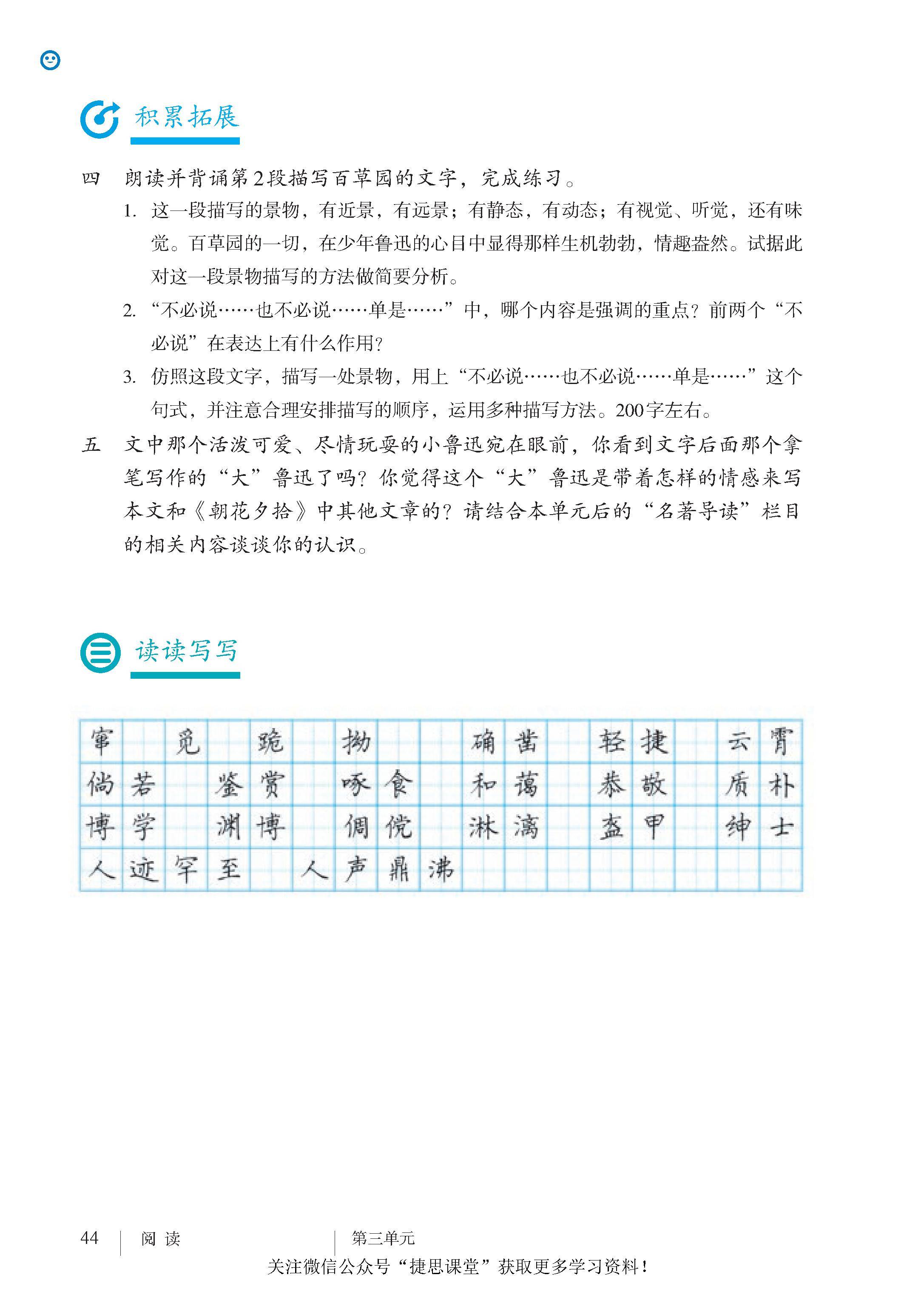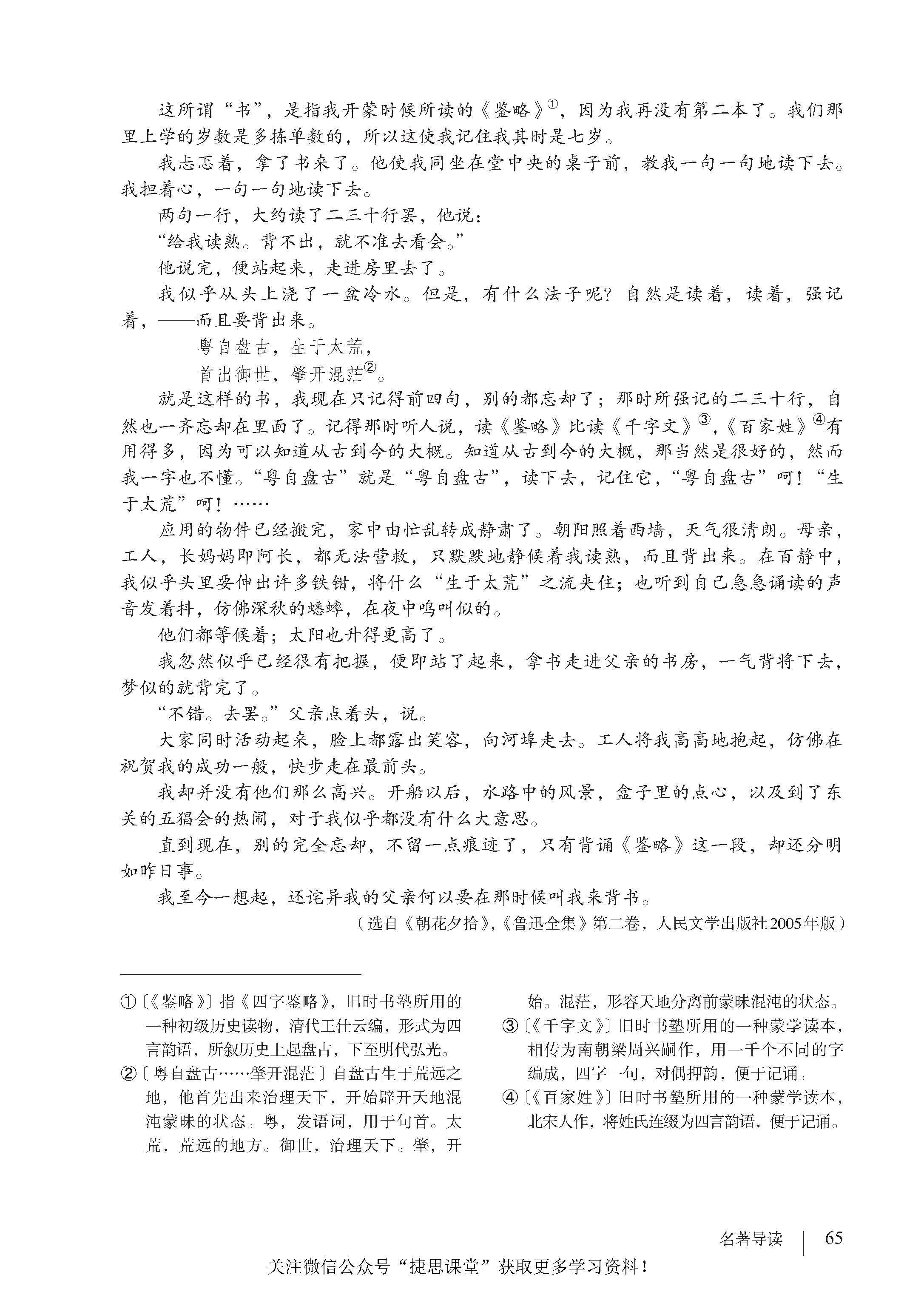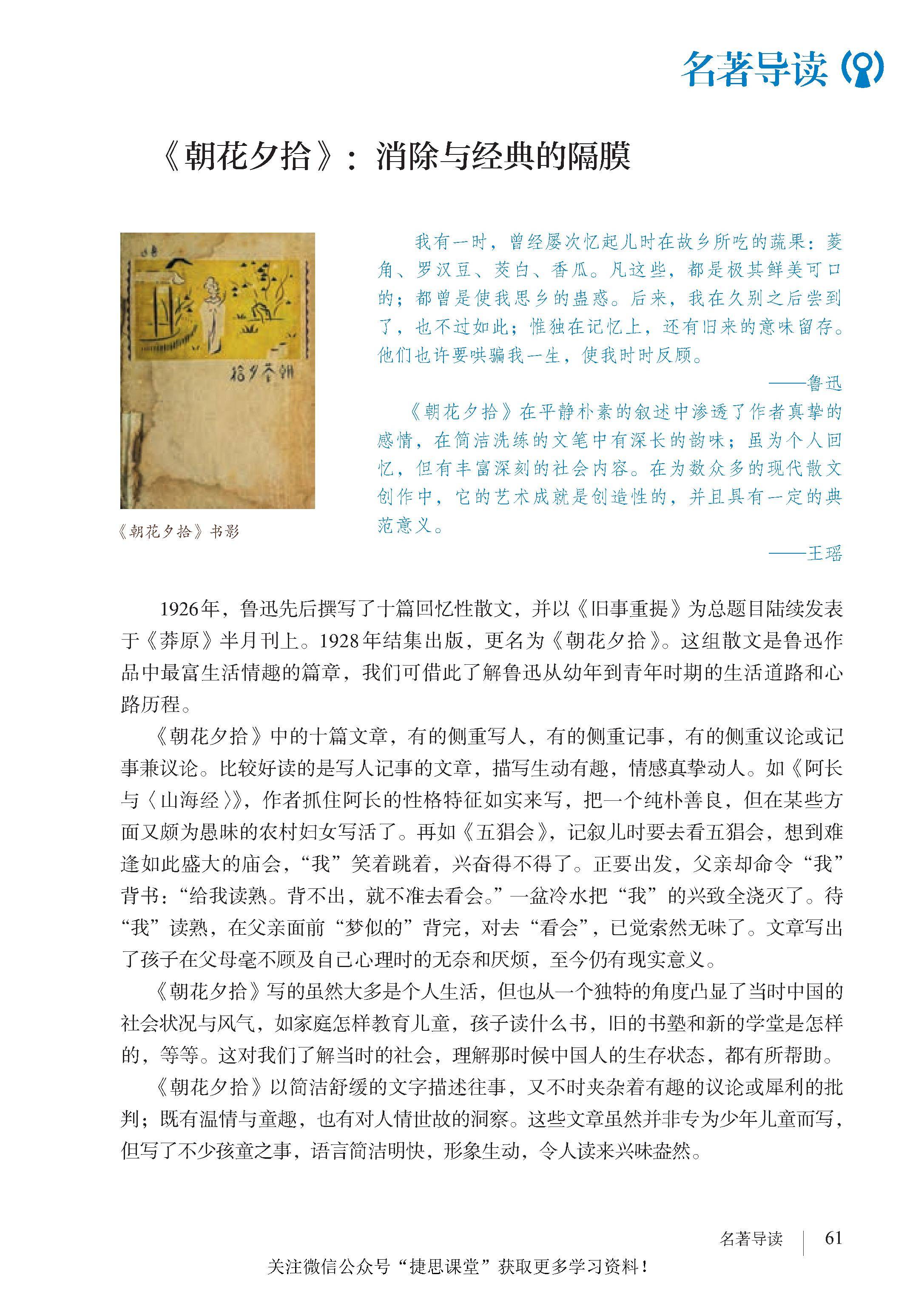 整本书阅读:《朝花夕拾》精读、略读、浏览