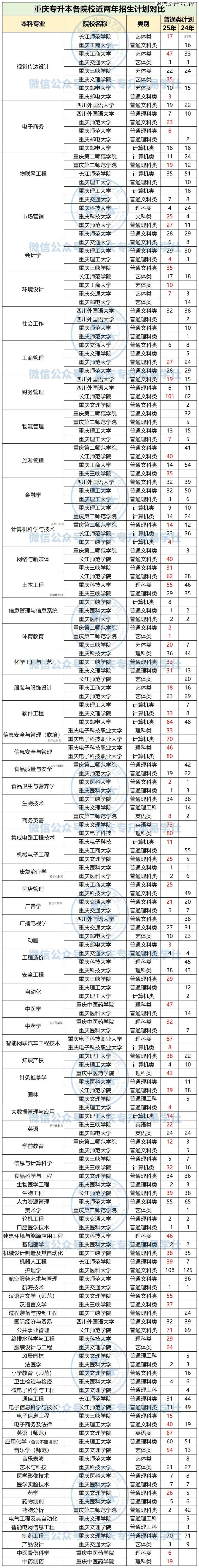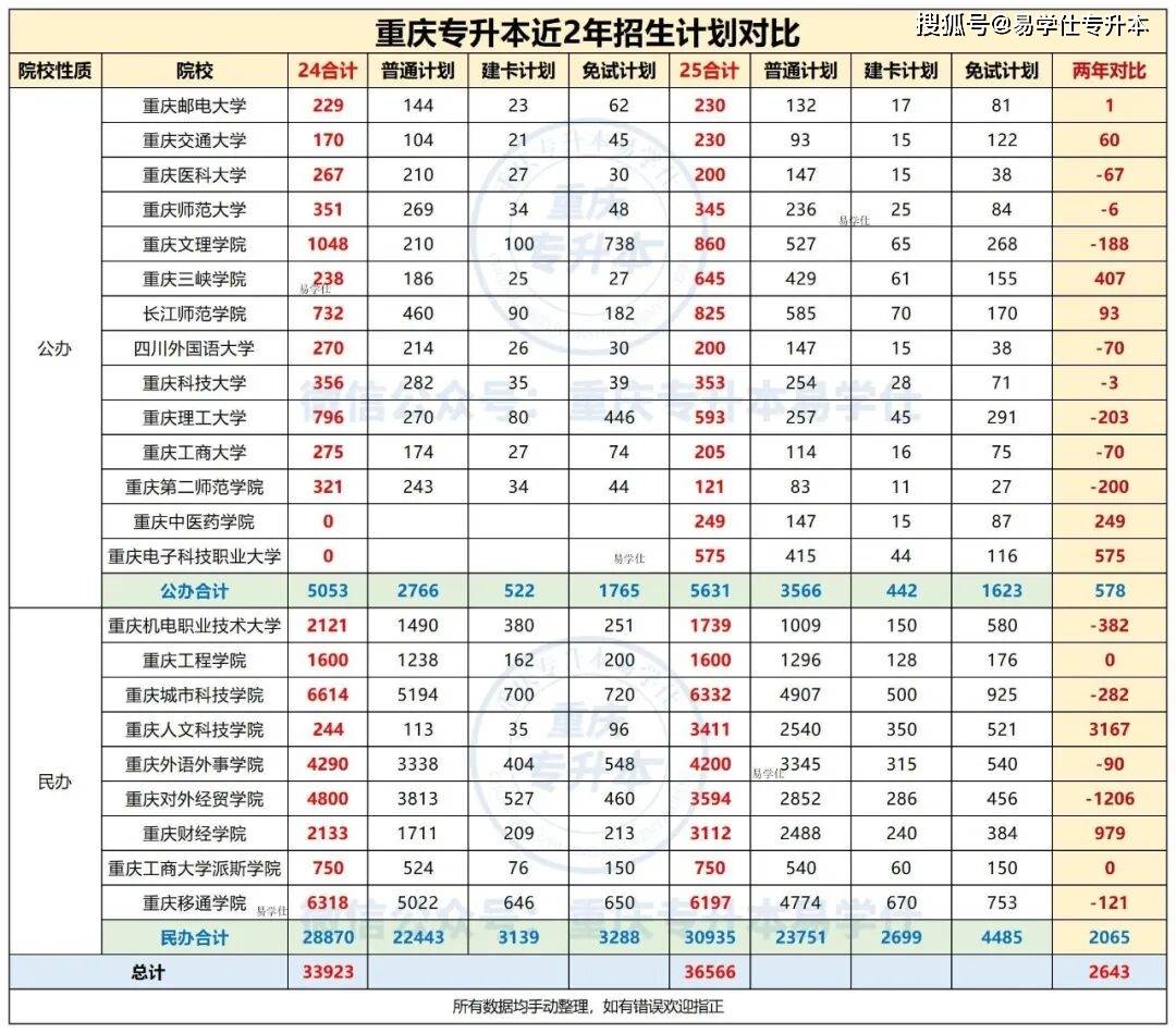 今天整理了重庆专升本近2年各院校招生计划人数,各专业招生计划人数对比,同学们可以参考。
