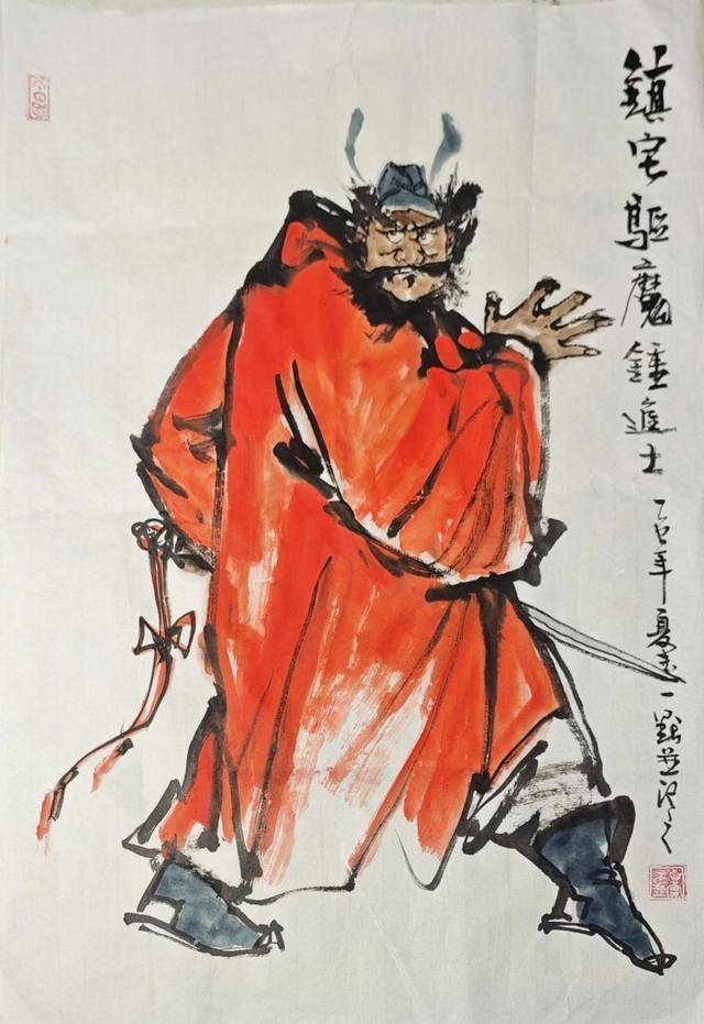 在华夏民俗与艺术的长河中,钟馗以其独特的文化生命力绵延不绝。其形象可追溯至唐代典籍与民间传说的交融:相传唐玄宗患病时,梦一小鬼盗物,后有一大鬼破梦而出,捉而啖之,自称钟馗,言因貌丑落第愤而自尽,誓为君王扫尽天下妖邪。玄宗醒后病愈,遂命吴道子绘其形,“钟馗捉鬼”由此流传,成为民间驱邪禳灾的精神象征。