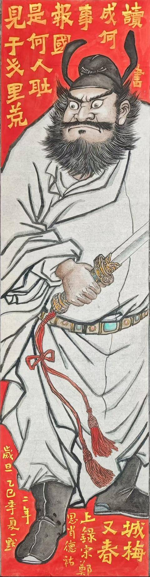 更深一层,这般设色暗合“阴阳五行”的哲学内核:红为阳,主生发驱散;白为阴,主收敛沉静。二者在画面中相争相融,既是“正邪对抗”的隐喻,亦达成“阴阳平衡”的和谐——恰如民俗中“驱邪”终为“护正”,艺术中“色彩冲突”亦归于“精神统一”。