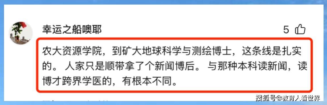 对此,有网友一眼看出,何静表面上看转行3次,实际只跨界了2次,甚至可以说没有跨界。农大资源学院,到矿大地球科学与测绘博士,这条线是扎实的,都是在学习挖掘数据,而新传博士后,本质上仍是在用数据的方法研究新闻传播,用理科的方法研究文科,5年前,何静在清华新传学院做博士后,其首个国家级课题《多源数据融合的突发事件谣言传播机理研究》,就是用GIS技术追踪微博谣言扩散路径。