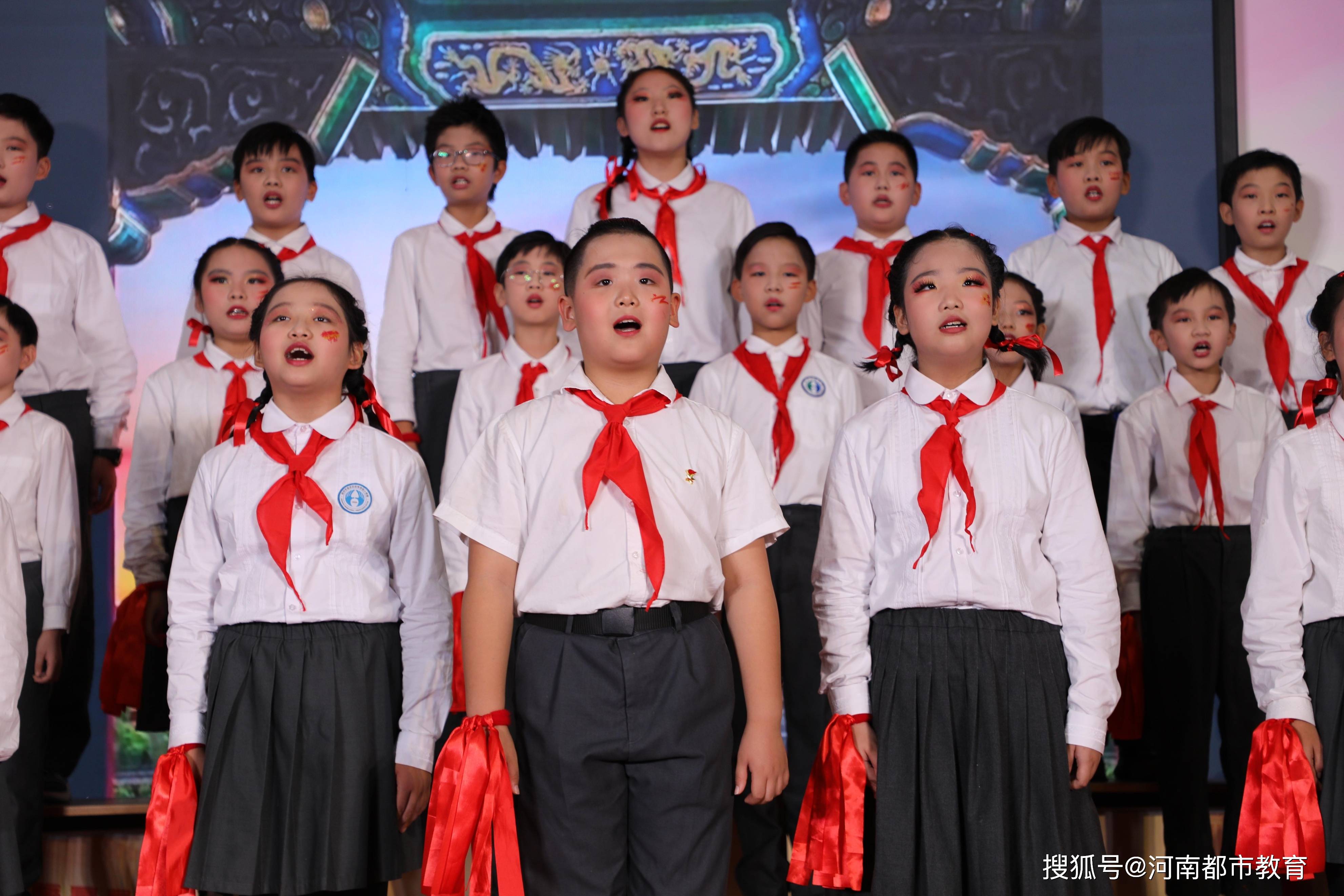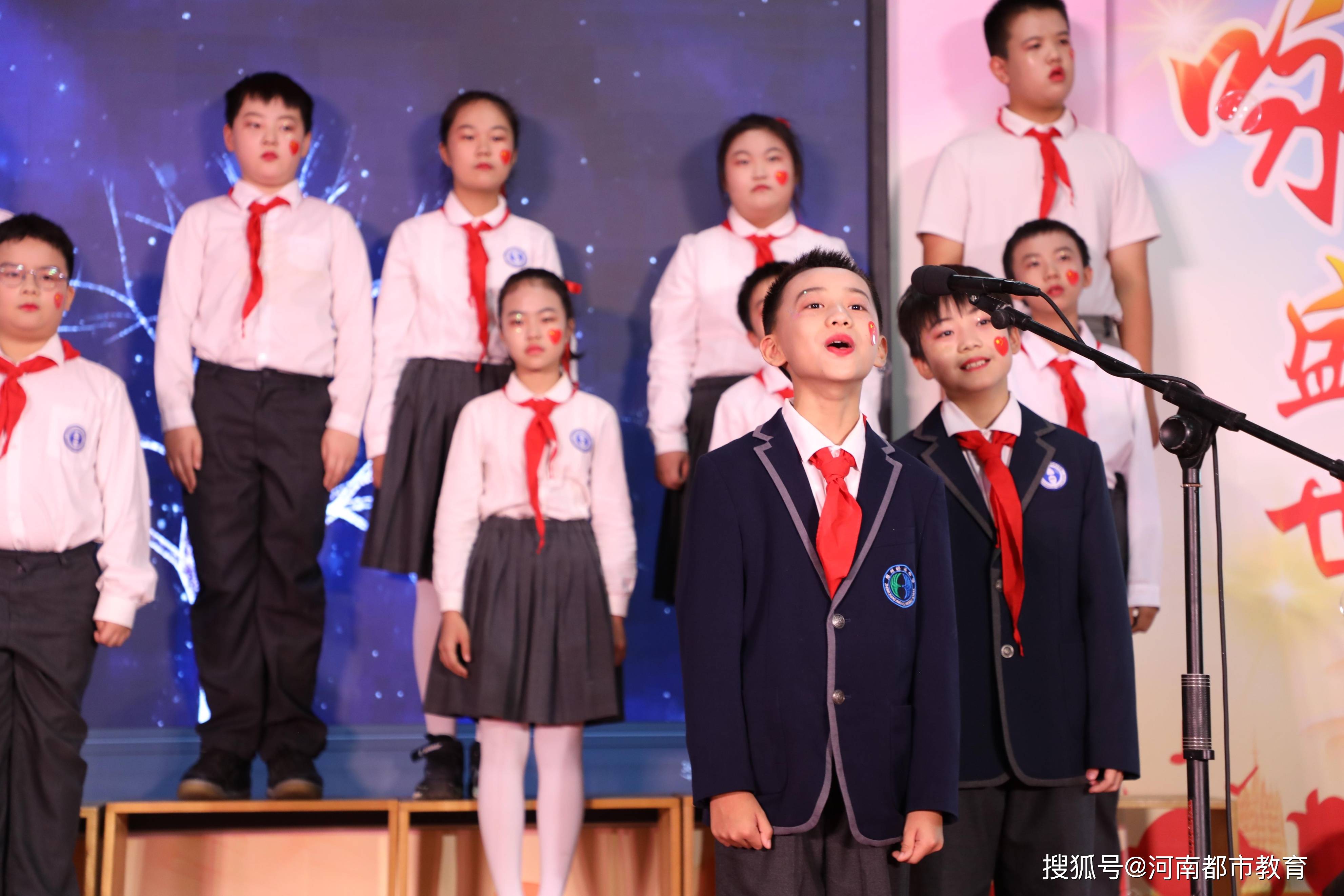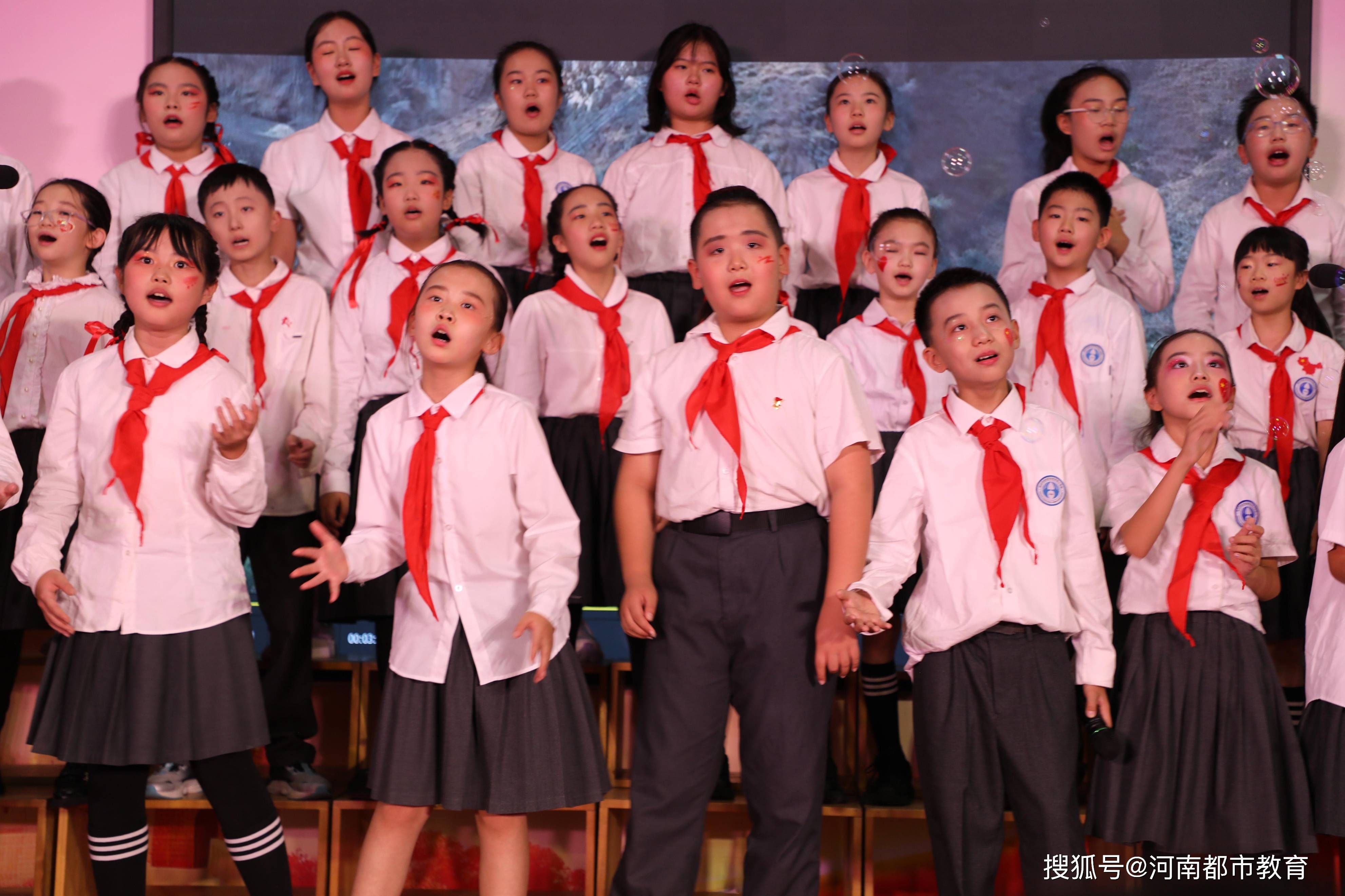 一年级的孩子们用《童心向党》《红红的太阳》《国旗国旗真美丽》等歌曲,将对党的向往、对祖国的依恋化作稚嫩却真挚的声线;二年级学子以《红星闪闪》《少年有志》《闪闪的红星》,在红色旋律中传递少年担当;五年级的舞台上,《东方之珠》的深情、《石榴籽一家亲》的团结、《少年中国说》的壮志,让山河的多元与少年的抱负交相辉映。