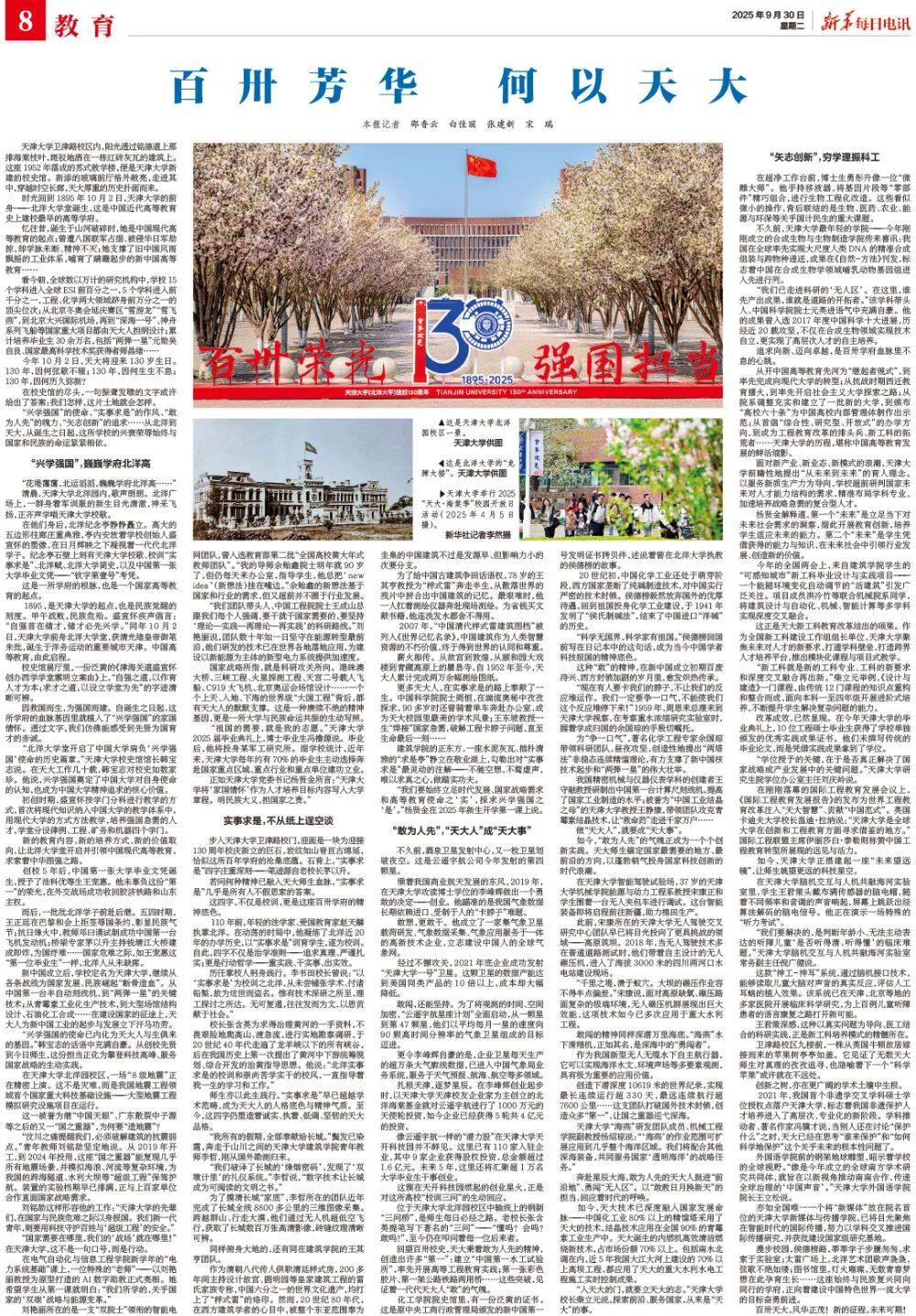 “兴学强国的使命已内化为天大人与生俱来的基因。”韩宝志的话语中充满自豪。从创校先贤到今日师生,这份担当正化为攀登科技高峰、服务国家战略的生动实践。
