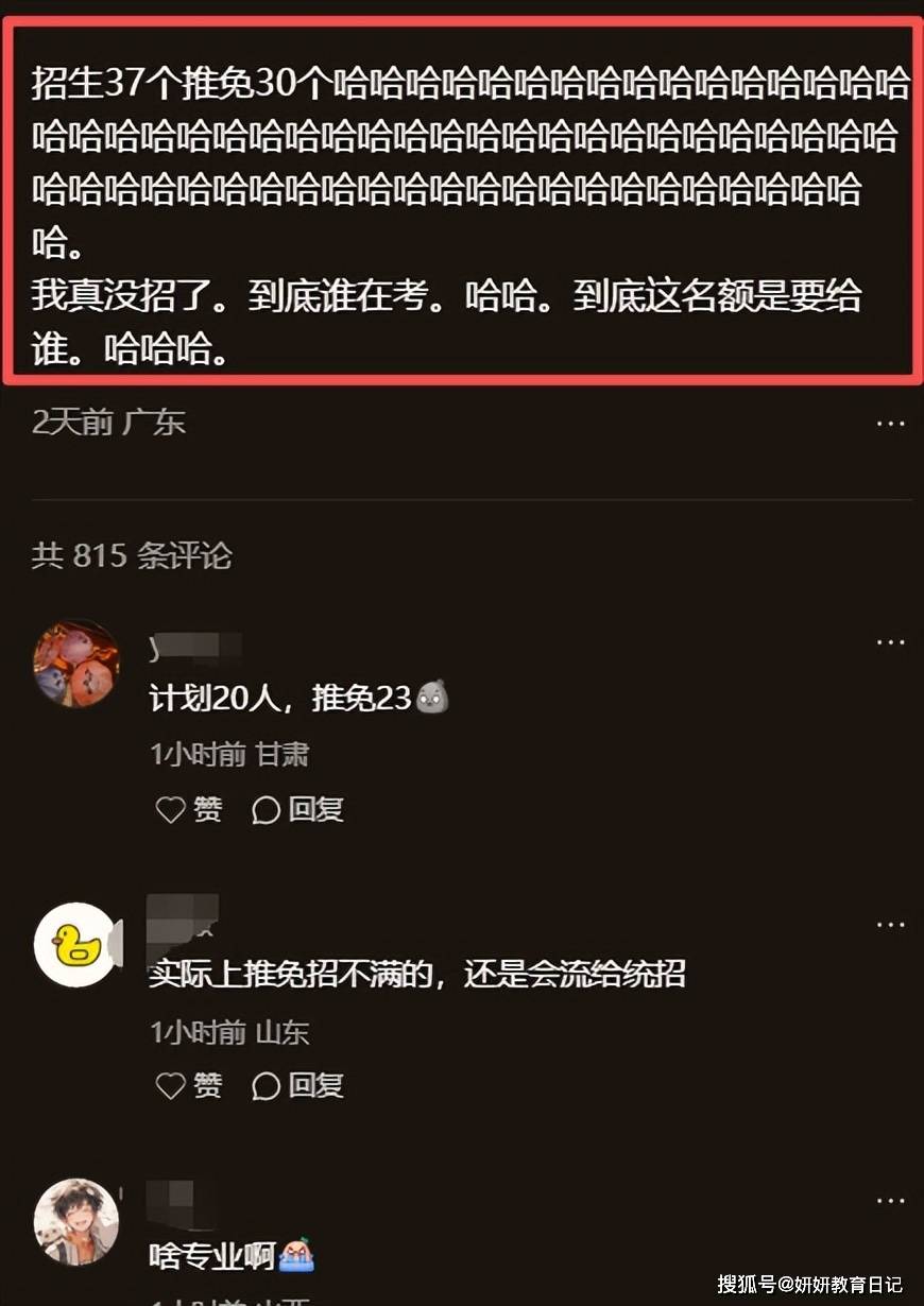 学生觉得前途一片大好,但是在定睛一看,发现其中30个名额全是废的,啥意思呢?原来这些名额全部给了推免考生。