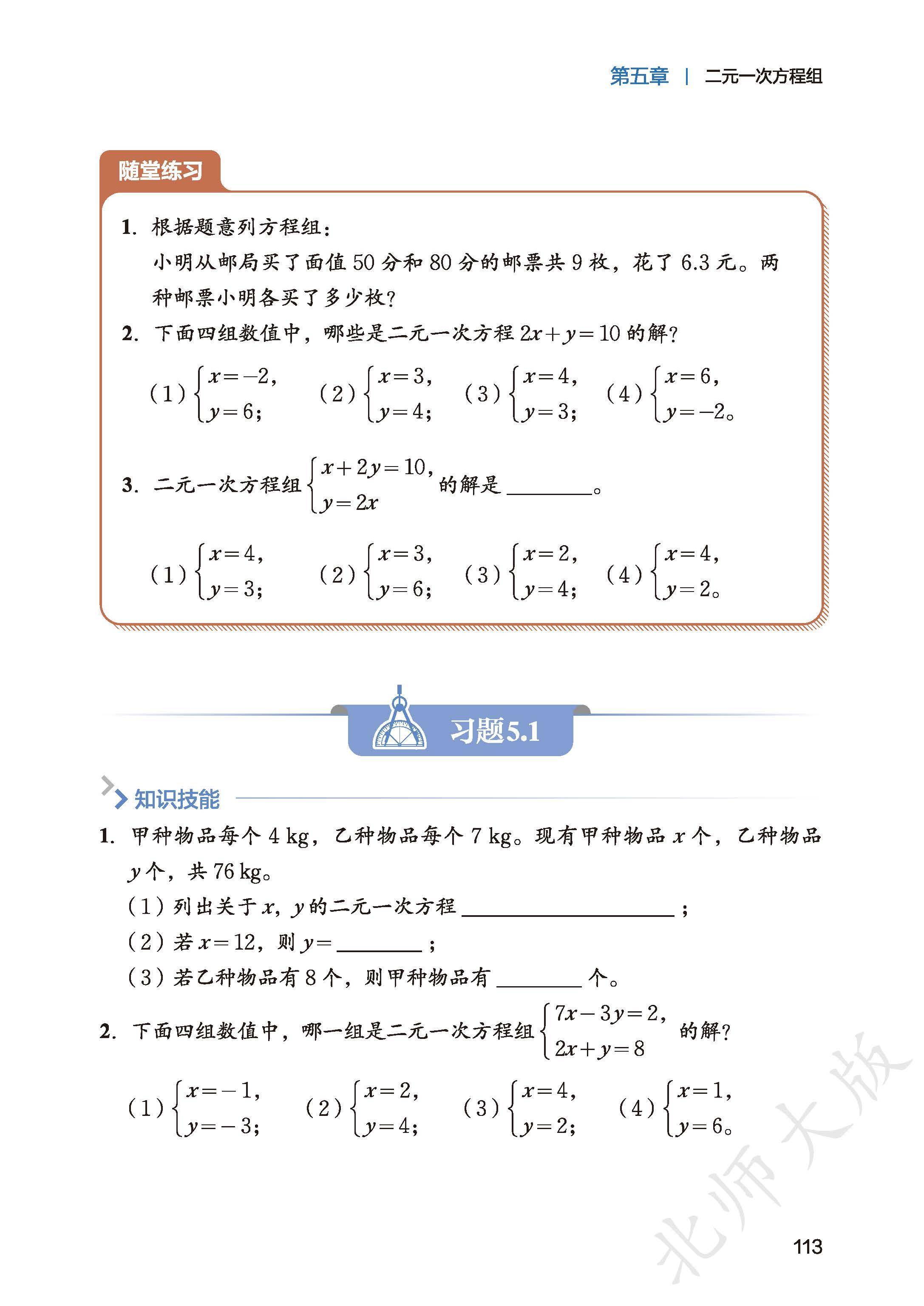 5.3 应用二元一次方程组 —— 鸡兔同笼