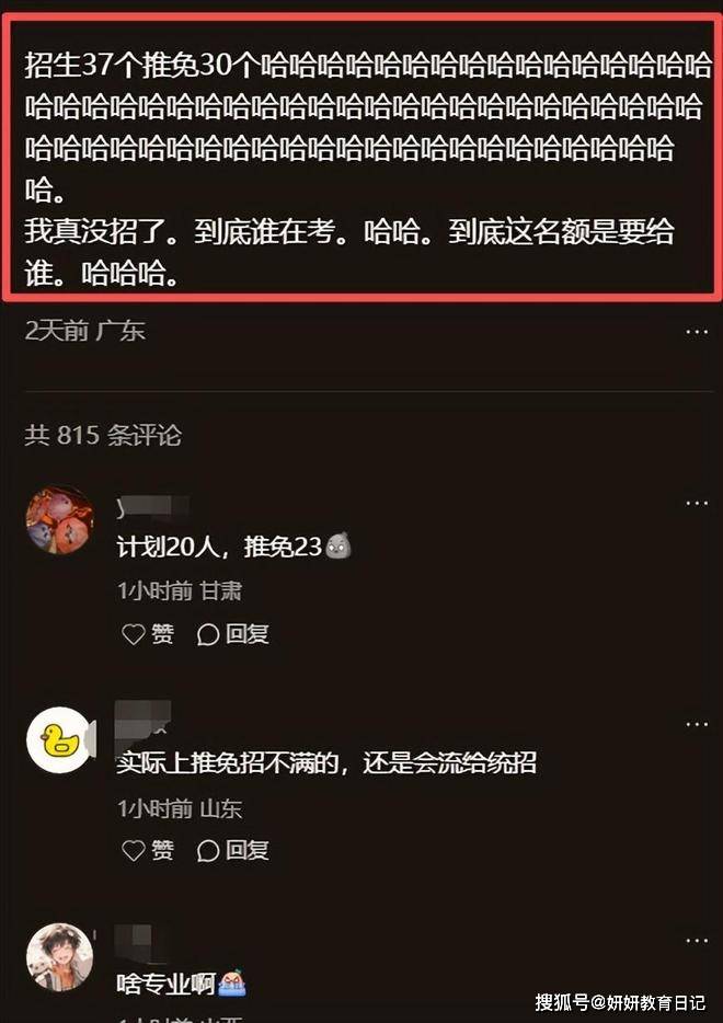 先看这一条就知道了,原来是一个考生发现他的这个目标院校今年招生37个人,可是其中有30个名额是普通人碰不得的。
