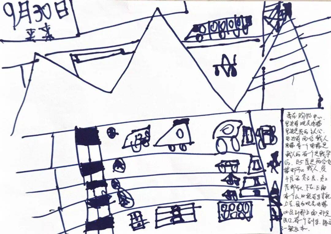 我在购物中心,里边有观光电梯,里边是我的主人公,里边有两台载人电梯,有一个电梯是载人的,有一个是载车的,b5层是两台电梯都可以载人,负4层和负3层,负2层都可以下去,上面有一个山,必须有车才能上去,因为观光电梯必须到那上面,那是出口,有一个列车,路过了一架飞机。