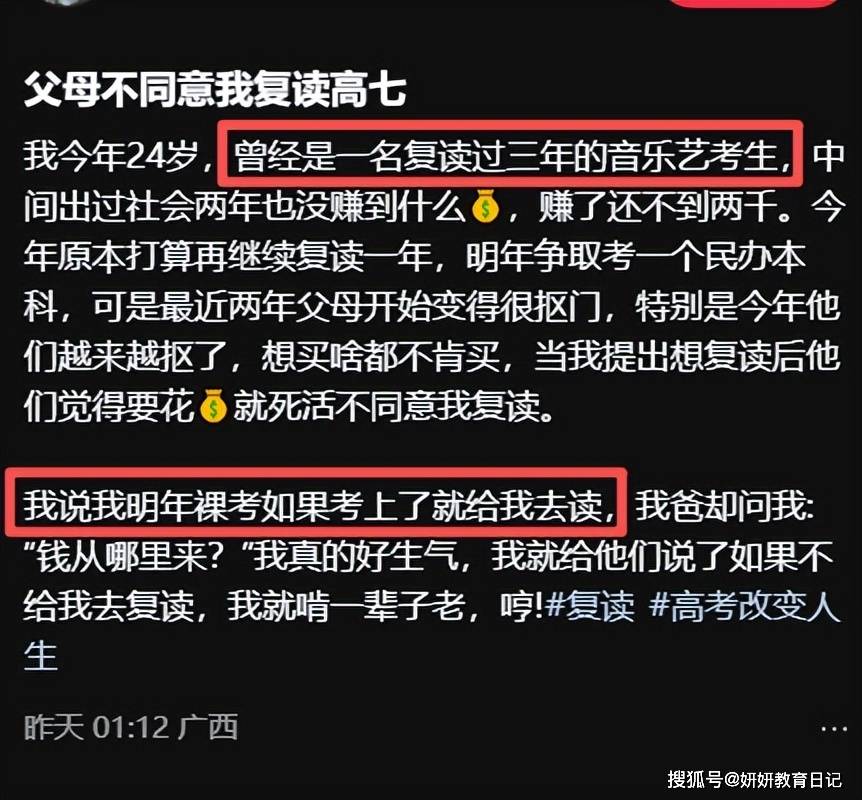 可见他一点独立生活的能力都没有,可能这也是因为没有学历导致的,于是他想着今年原本打算再复读一年,明年争取考个民办本科。