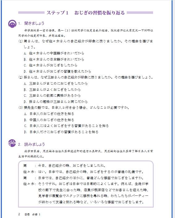 人教版高中日语(必修)一电子课本,以图片的形式呈现给大家,希望对同学们的暑期学习有所帮助。