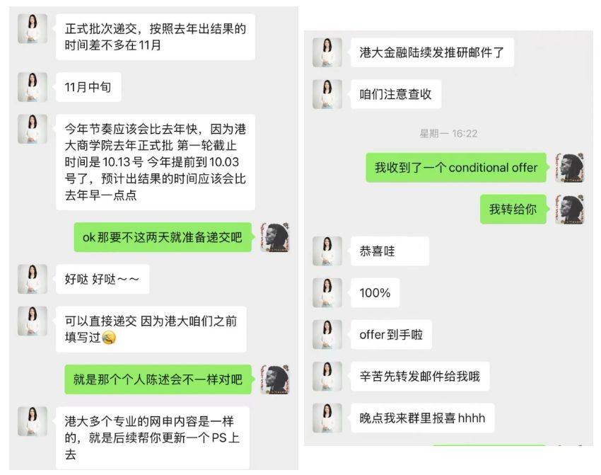申请过程中,我也总结出不少经验:即使找了中介,也不能当 “甩手掌柜”,要主动跟进文书、发掘经历亮点,随时和老师沟通进度;每天必查邮箱,避免漏掉验证码、补充材料通知等关键信息;确定申请项目时,要结合自己的喜好和老师预判的录取时间,合理安排顺序。就这样,从决定留学到收到港大金融学硕士预录取(8 月 25 日),我只用了 1 个月,整个过程高效又扎实。