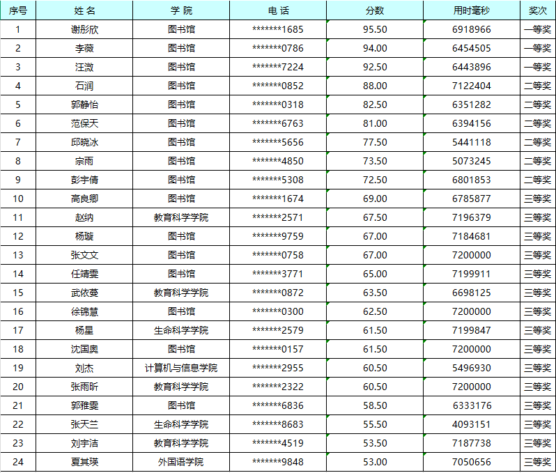 2025年大学生“AI+信息素养”大赛安徽赛区学校选拔赛获奖结果如下: